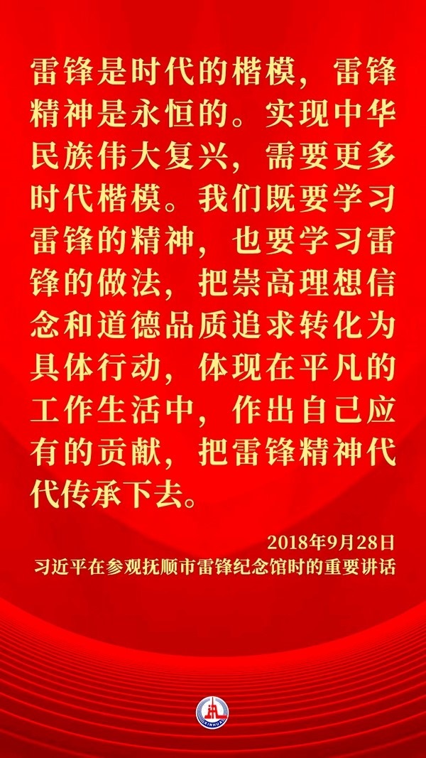 “雷鋒是時(shí)代的楷模,雷鋒精神是永恒的。實(shí)現(xiàn)中華民族偉大復(fù)興,需要更多時(shí)代楷模?!绷?xí)近平總書(shū)記的號(hào)召,喚起億萬(wàn)人奮斗與堅(jiān)守。新時(shí)代,雷鋒精神是持續(xù)激發(fā)崇德向善的磅礴偉力;新時(shí)代“雷鋒”,在新征程上頑強(qiáng)拼搏,匯聚起共和國(guó)奔騰向前的時(shí)代潮流!
