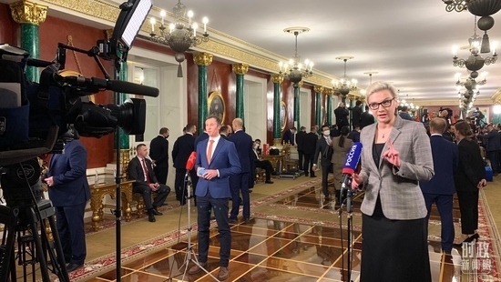 習(xí)主席當(dāng)天在克里姆林宮的活動(dòng)從下午持續(xù)到晚上。兩國(guó)元首先后舉行小范圍、大范圍會(huì)談。會(huì)談后,兩國(guó)元首共同簽署了兩份重磅聯(lián)合聲明,并共同會(huì)見(jiàn)記者。當(dāng)晚,普京總統(tǒng)還為習(xí)主席舉行了隆重的歡迎宴會(huì)。