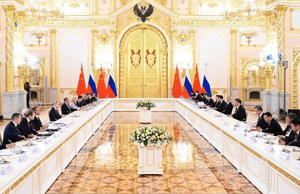 10年前,習(xí)近平主席首次當(dāng)選國(guó)家主席后首次出訪就來到俄羅斯。10年來,習(xí)近平主席同普京總統(tǒng)40余次會(huì)晤,以多種方式保持密切聯(lián)系溝通,共同引領(lǐng)中俄新時(shí)代全面戰(zhàn)略協(xié)作伙伴關(guān)系深入發(fā)展。
