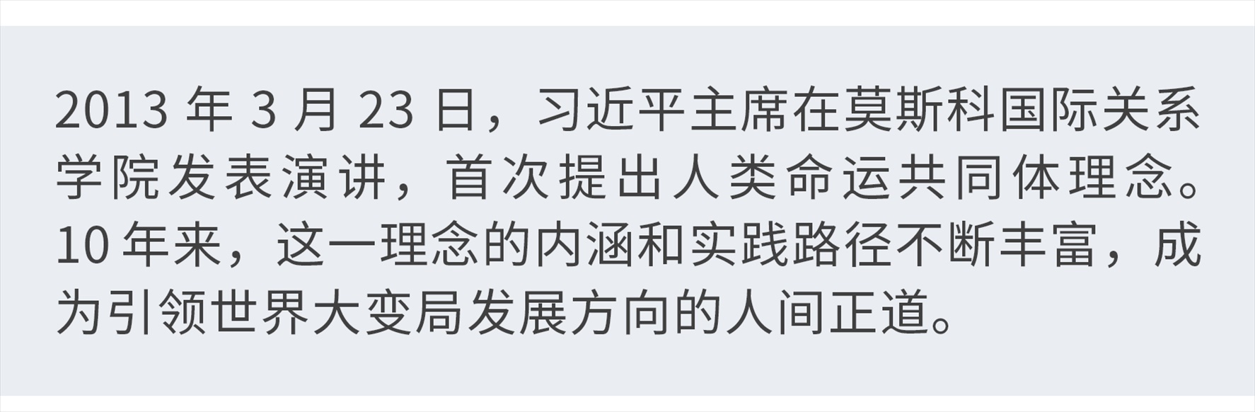 “我們兩國要永做好鄰居、好朋友、好伙伴”。10年前,當(dāng)選國家主席后首次出訪,習(xí)近平在莫斯科國際關(guān)系學(xué)院發(fā)表演講時這樣說道。也正是在這次演講中,習(xí)近平主席首次提出人類命運(yùn)共同體理念。