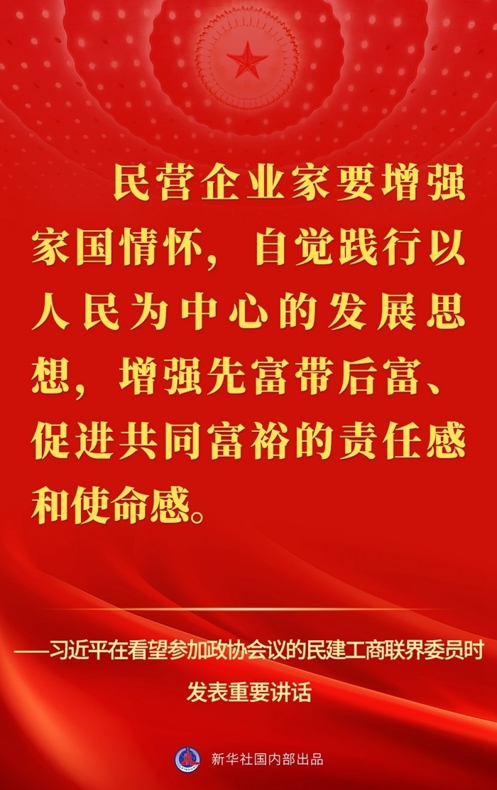 “黨中央始終堅(jiān)持‘兩個毫不動搖’、‘三個沒有變’,始終把民營企業(yè)和民營企業(yè)家當(dāng)作自己人。”3月6日,習(xí)近平總書記在看望參加全國政協(xié)十四屆一次會議的民建、工商聯(lián)界委員并參加聯(lián)組會時發(fā)表重要講話,強(qiáng)調(diào)要引導(dǎo)民營企業(yè)和民營企業(yè)家正確理解黨中央方針政策,增強(qiáng)信心、輕裝上陣、大膽發(fā)展。
