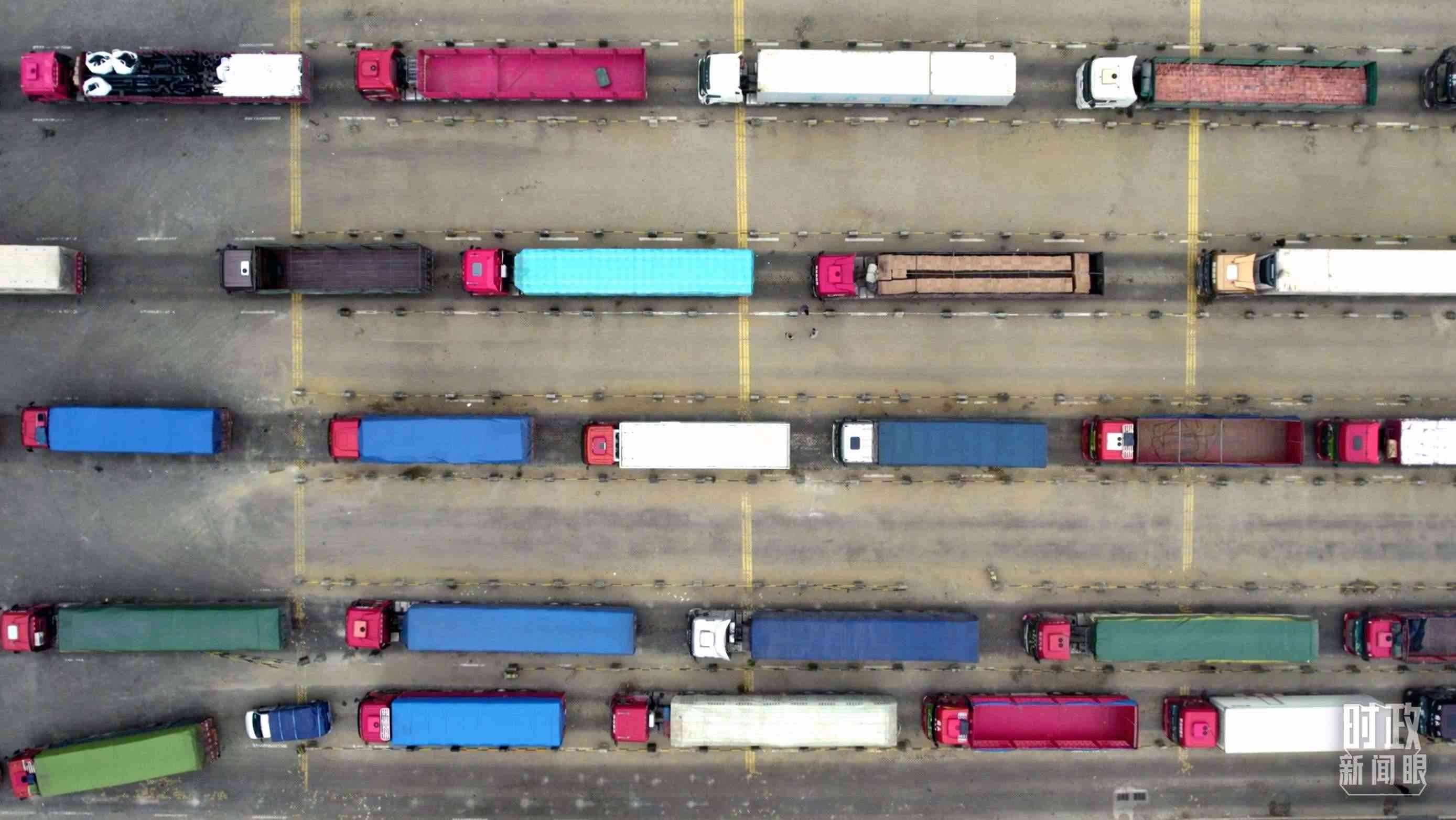 △徐聞港內運送貨物的車隊。(總臺央視記者范凱拍攝)