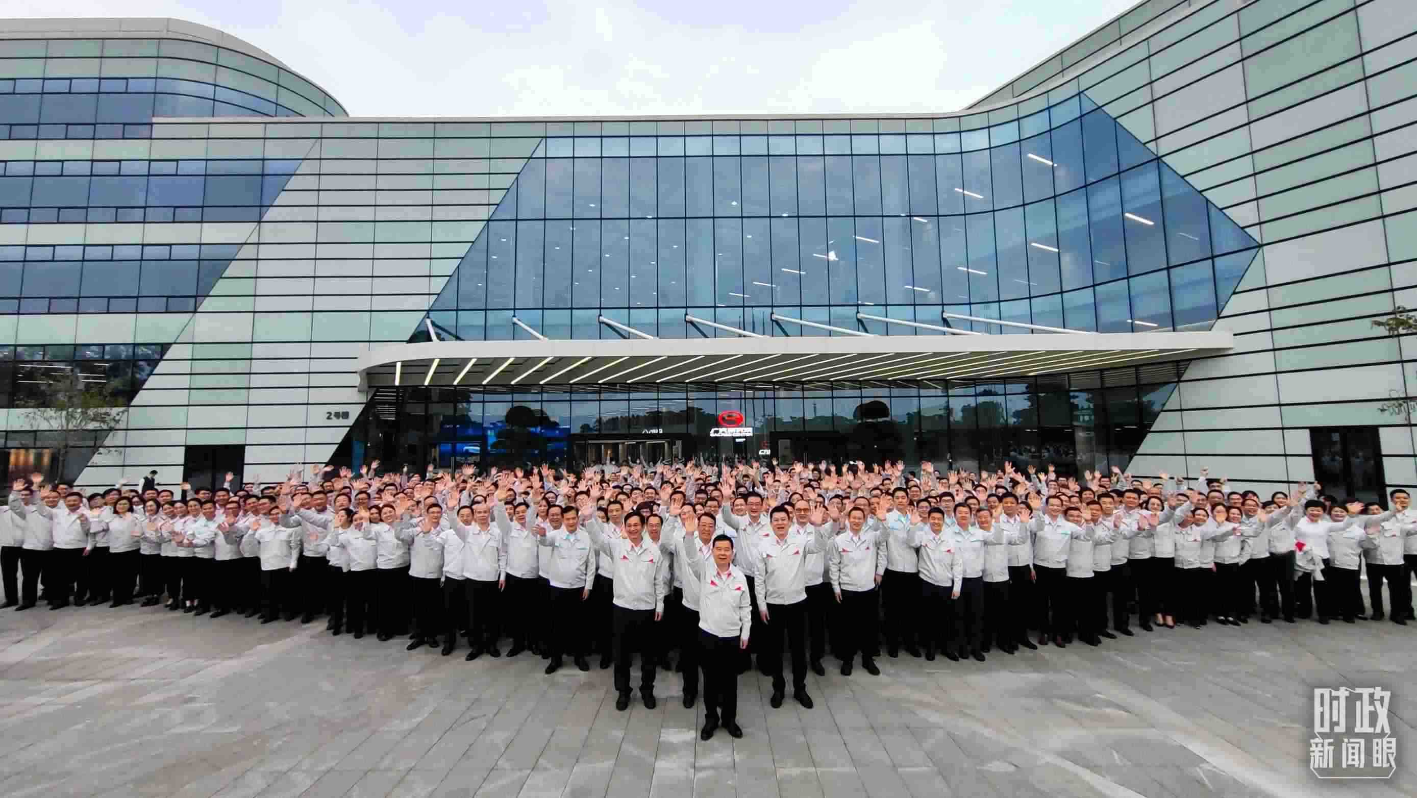 △考察當天,廣汽員工代表大合影。(總臺央視記者張曉鵬拍攝)