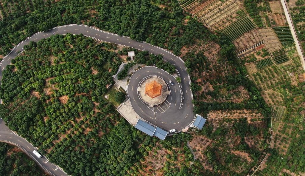 沿著平整山路,穿梭丘陵之間,滿目蔥翠,民居點綴其間。