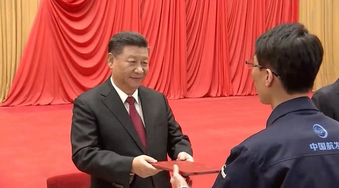 △2020年11月24日,在全國勞動模范和先進工作者表彰大會上,習(xí)近平總書記向全國勞動模范和先進工作者代表頒發(fā)榮譽證書。