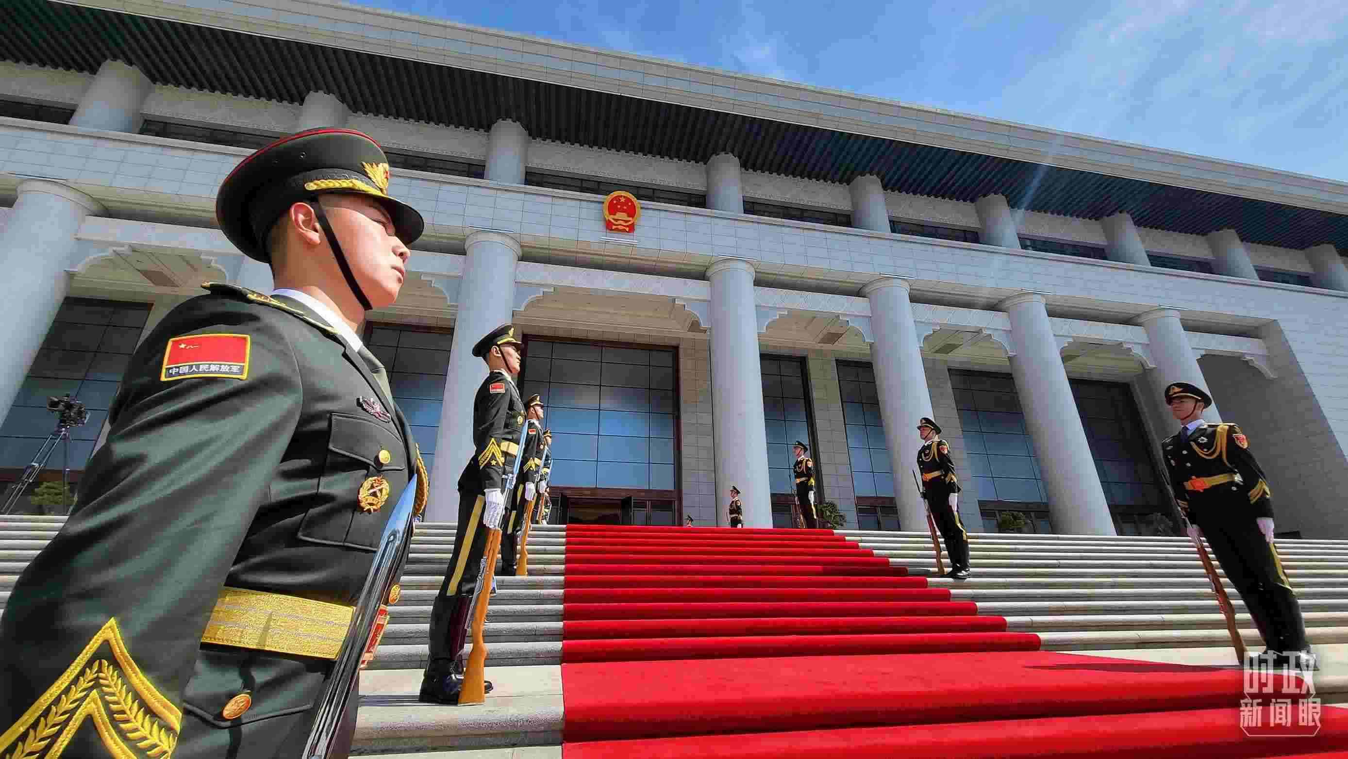 △陜西賓館會(huì)議中心外,禮兵列隊(duì)迎接貴賓。(總臺(tái)央視記者鐘信偉拍攝)