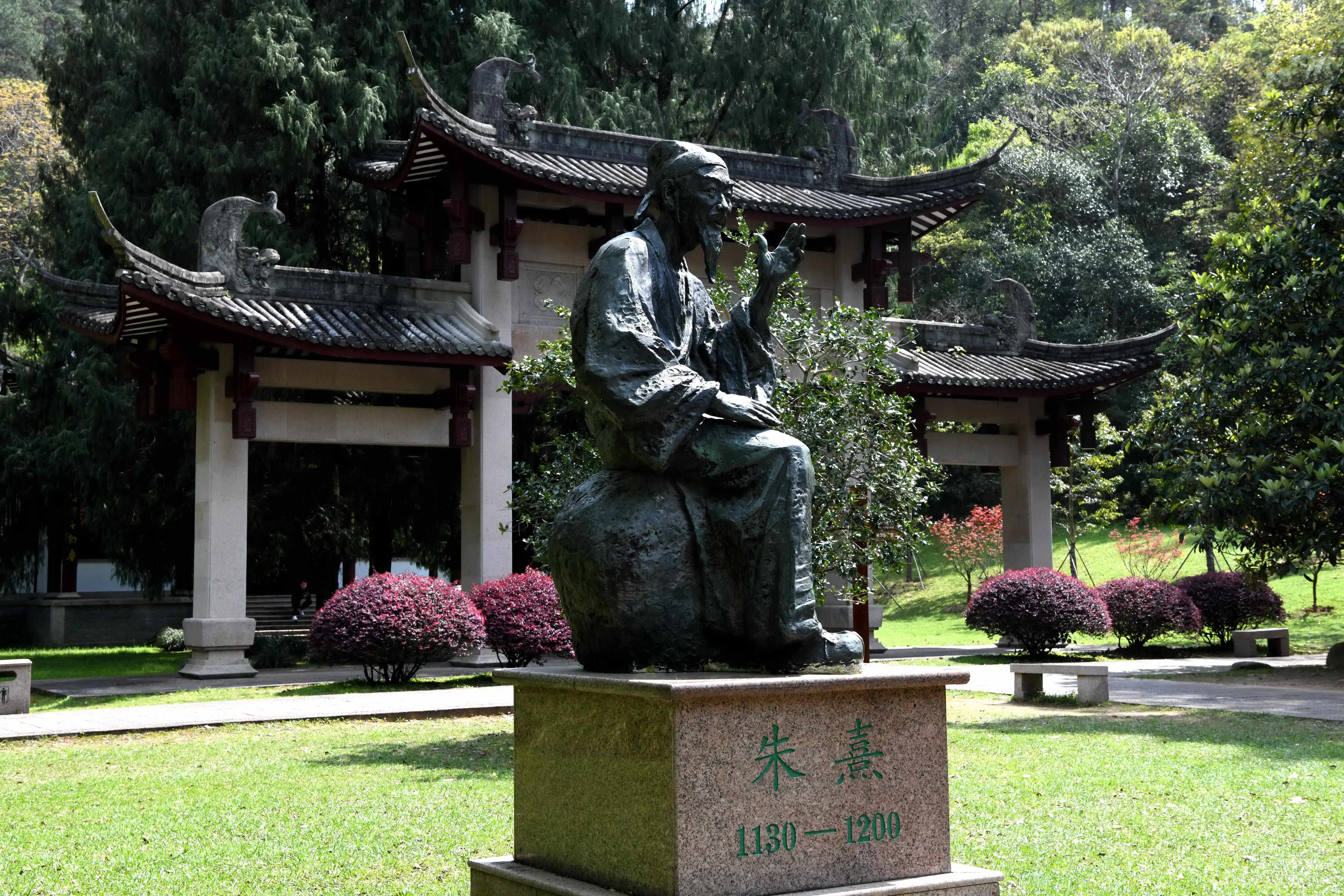 △福建武夷山朱熹園門口的朱熹雕塑。朱熹園是武夷山世界文化遺產的核心部分,也被譽為朱子理學的“搖籃”。