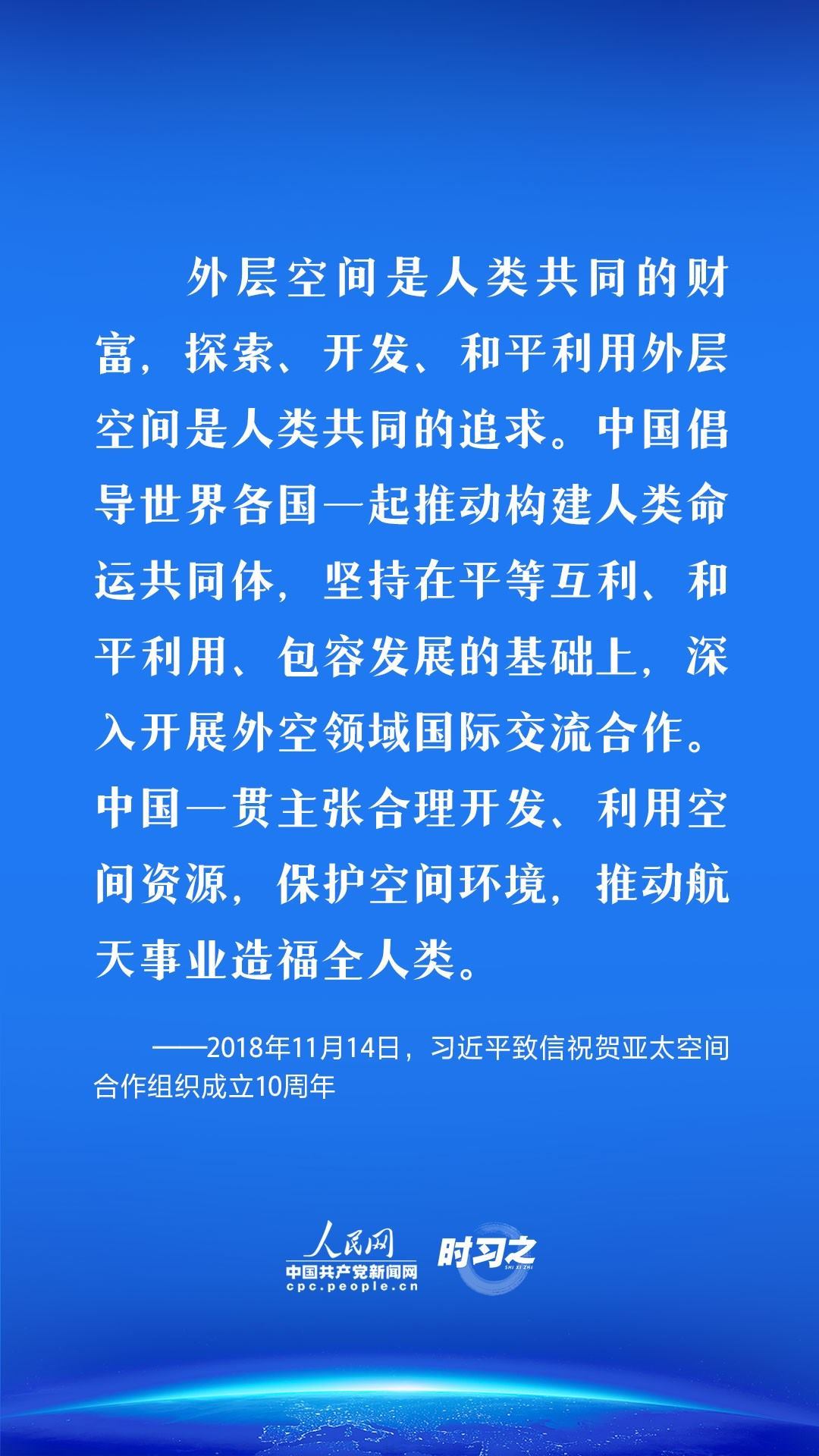 外層空間是人類共同的財富,探索、開發(fā)、和平利用外層空間是人類共同的追求。近年來,中國積極開展空間探索活動,不斷深化人類對宇宙的認(rèn)知,致力增進人類共同福祉。習(xí)近平高度重視我國航天事業(yè)發(fā)展,多次作出重要論述和重要指示批示,倡導(dǎo)世界各國一起推動構(gòu)建人類命運共同體,堅持在平等互利、和平利用、包容發(fā)展的基礎(chǔ)上,深入開展外空領(lǐng)域國際交流合作。