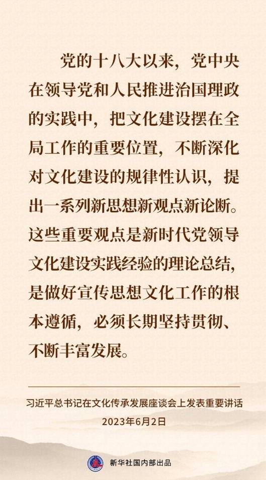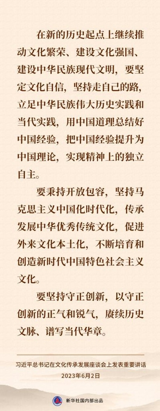 6月2日,習(xí)近平總書記在北京出席文化傳承發(fā)展座談會(huì)并發(fā)表重要講話。一起來(lái)看講話速覽↓