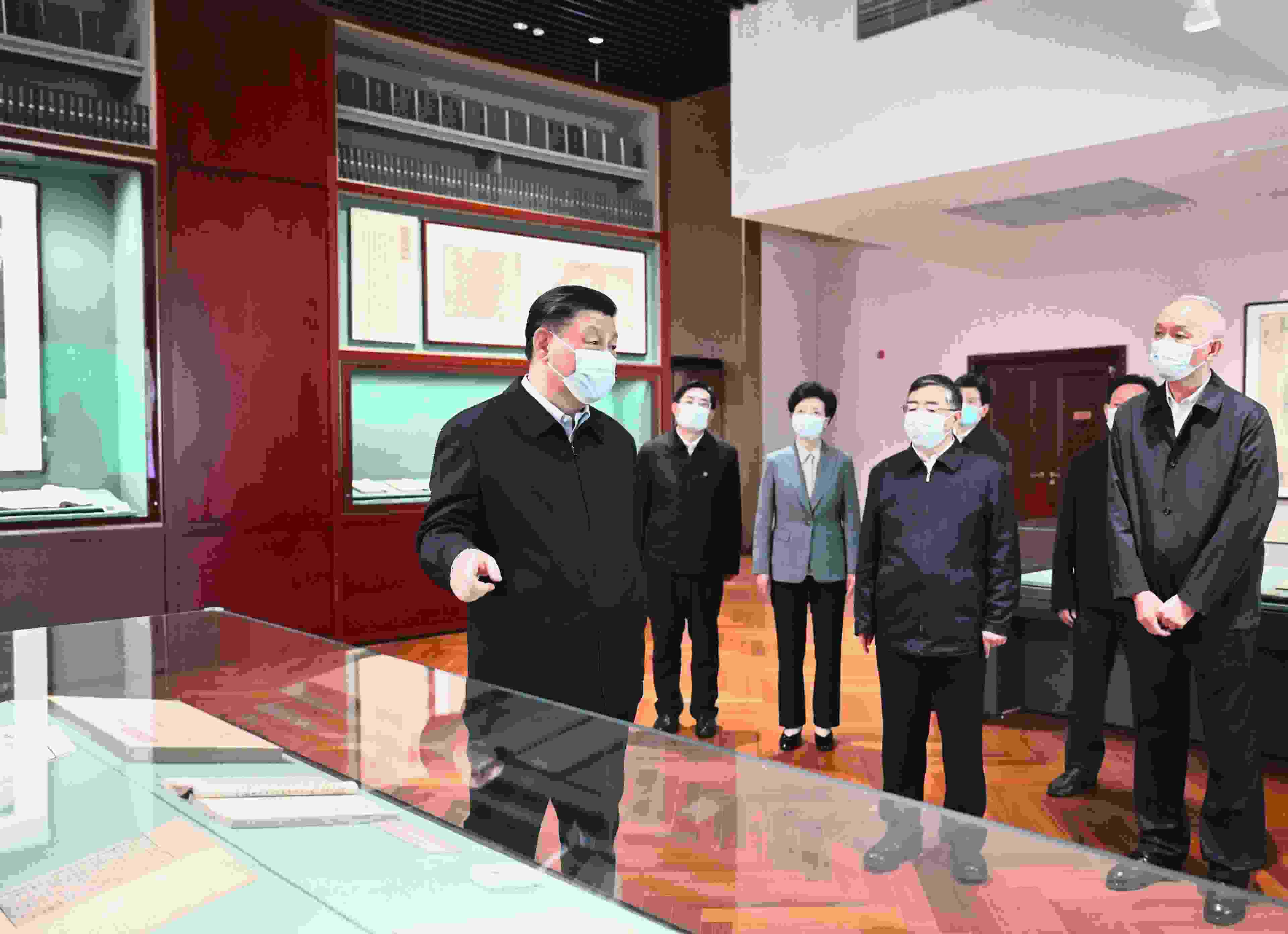 考察當(dāng)天,習(xí)近平總書記首先走進(jìn)文華堂,聽取版本館規(guī)劃建設(shè)有關(guān)情況介紹。