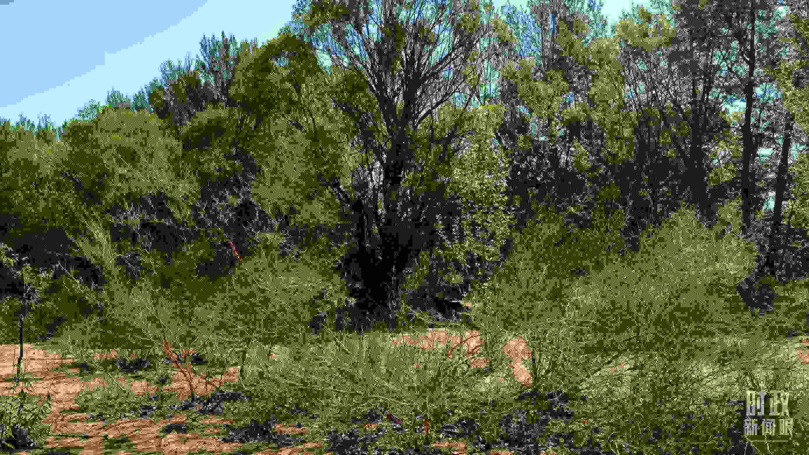 △喬灌草相結(jié)合的植被恢復(fù)模式。(總臺央視記者石丞拍攝)