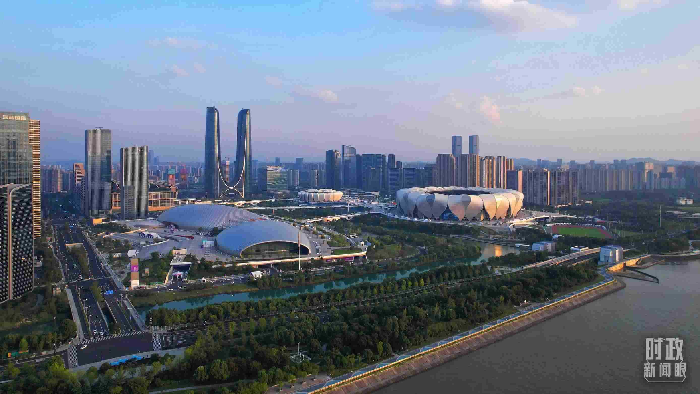 △杭州第19屆亞運會主會場——杭州奧林匹克體育中心。(總臺央視記者范凱拍攝)
