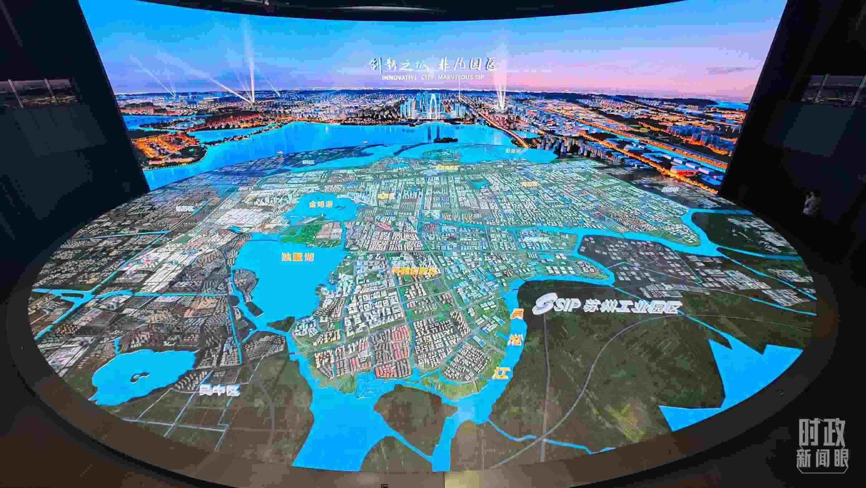 △蘇州工業(yè)園區(qū)數(shù)字沙盤。(總臺(tái)央視記者彭漢明拍攝)