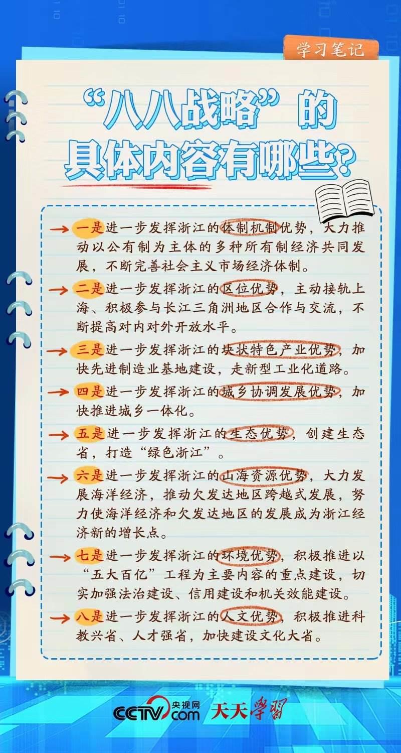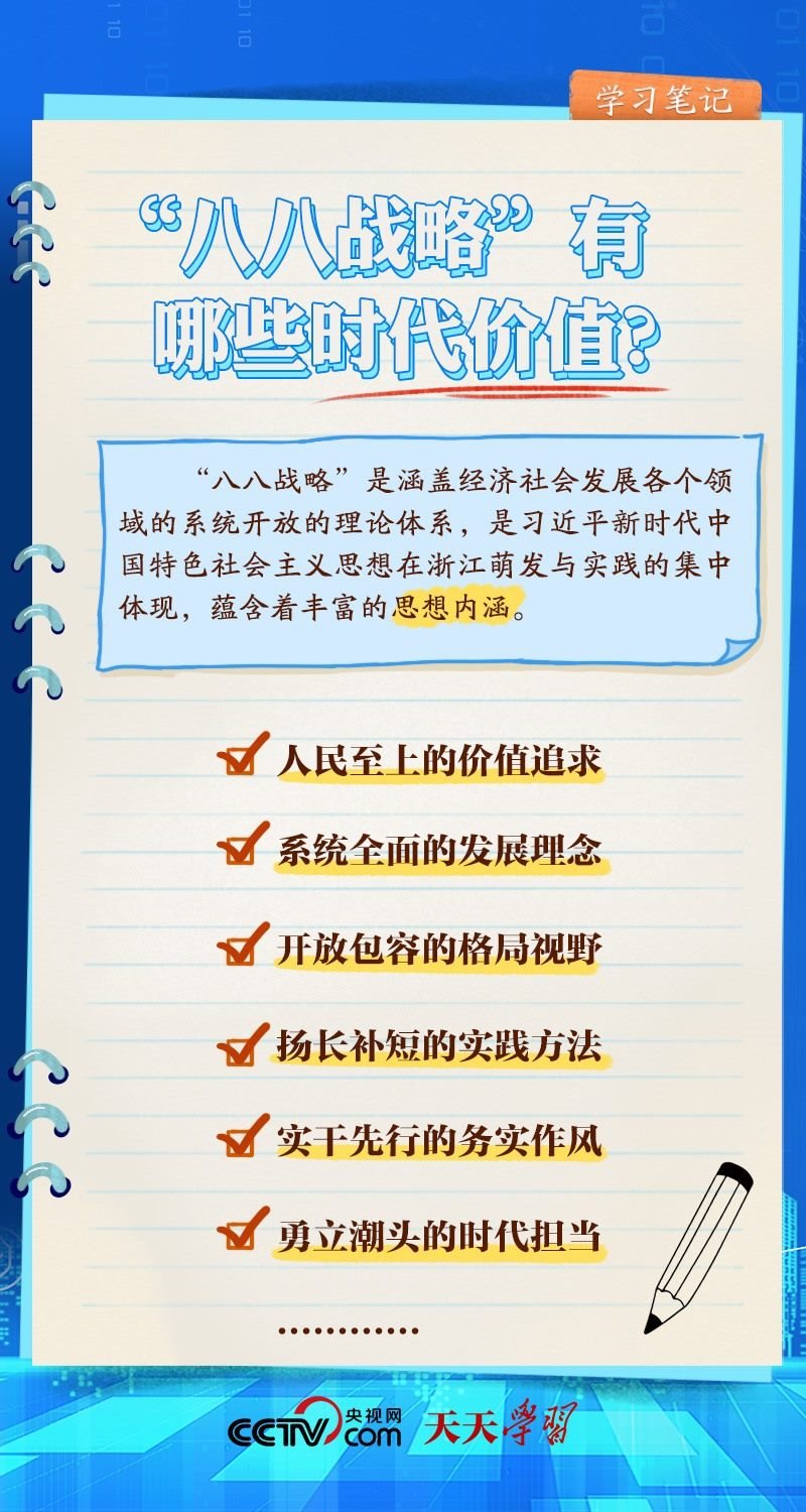 什么是“八八戰(zhàn)略”?“八八戰(zhàn)略”的時(shí)代價(jià)值有哪些?央視網(wǎng)《天天學(xué)習(xí)·學(xué)習(xí)筆記》帶您一起了解。