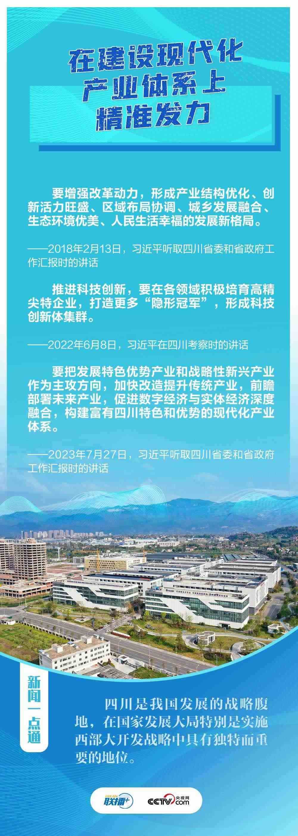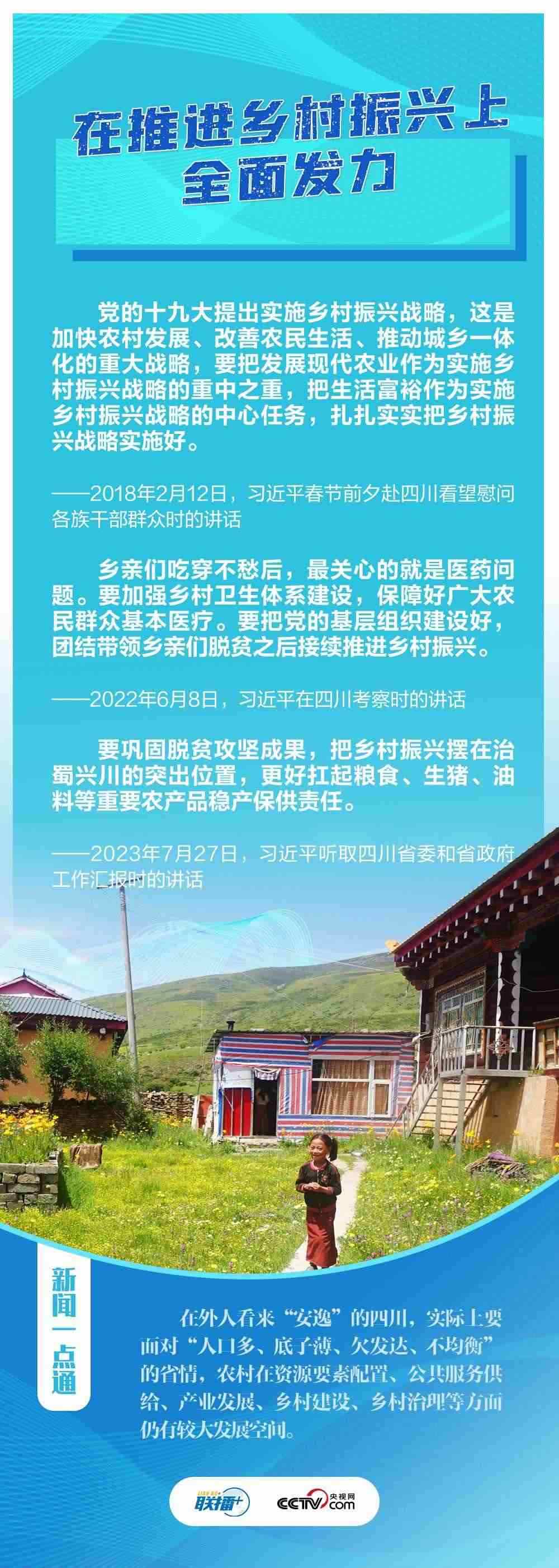 “希望四川在推進(jìn)科技創(chuàng)新和科技成果轉(zhuǎn)化上同時(shí)發(fā)力,在建設(shè)現(xiàn)代化產(chǎn)業(yè)體系上精準(zhǔn)發(fā)力,在推進(jìn)鄉(xiāng)村振興上全面發(fā)力,在筑牢長江黃河上游生態(tài)屏障上持續(xù)發(fā)力?!?月27日,在巴蜀大地考察的習(xí)近平總書記聽取四川省委和省政府工作匯報(bào),對(duì)四川各項(xiàng)工作提出新寄望。