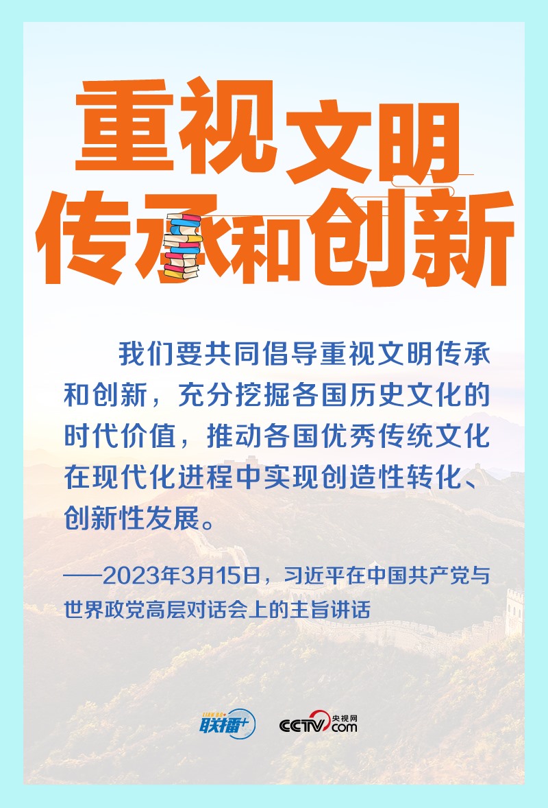 重視文明傳承和創(chuàng)新,是文明交流互鑒的動(dòng)力源泉。2023年年初,習(xí)近平總書(shū)記在中國(guó)共產(chǎn)黨與世界政黨高層對(duì)話會(huì)上首次提出全球文明倡議,這是繼全球發(fā)展倡議、全球安全倡議后,新時(shí)代中國(guó)為國(guó)際社會(huì)提供的新的國(guó)際公共產(chǎn)品。