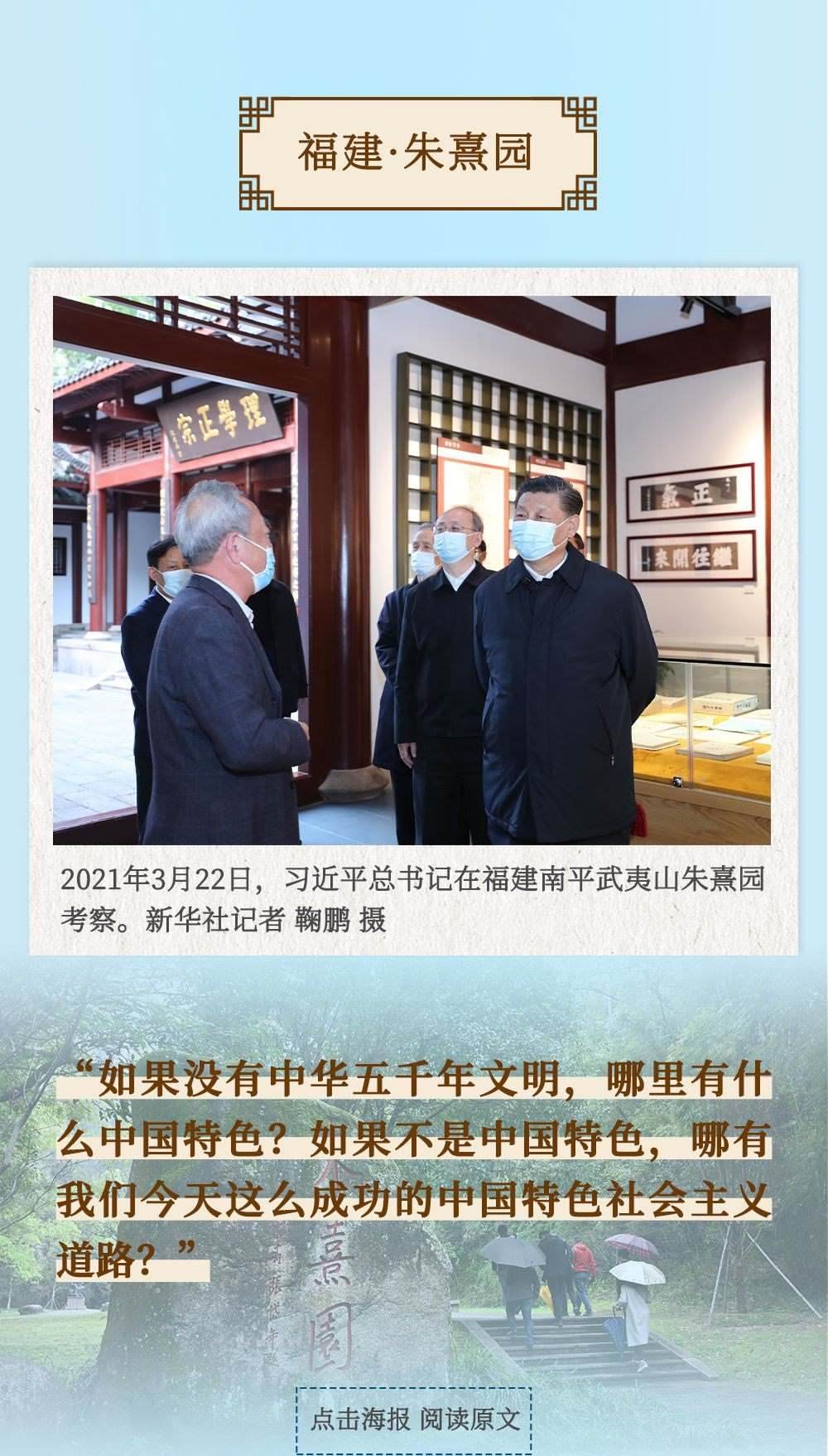 從四川三蘇祠到河南殷墟遺址,從山東孔府、孔子研究院到湖南大學(xué)岳麓書院,從甘肅嘉峪關(guān)關(guān)城到福建朱熹園,從山西云岡石窟到廣東潮州古城……考察文化遺產(chǎn)、探尋文明根脈,帶著深厚的歷史感,習(xí)近平總書記的“文化足跡”遍及全國。