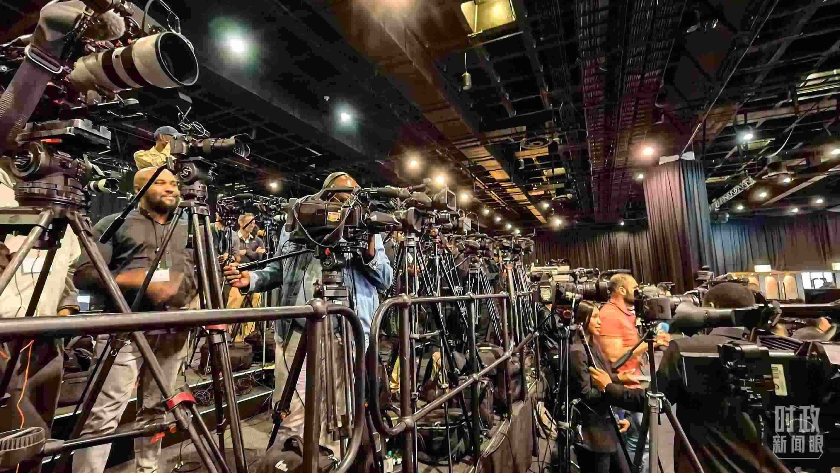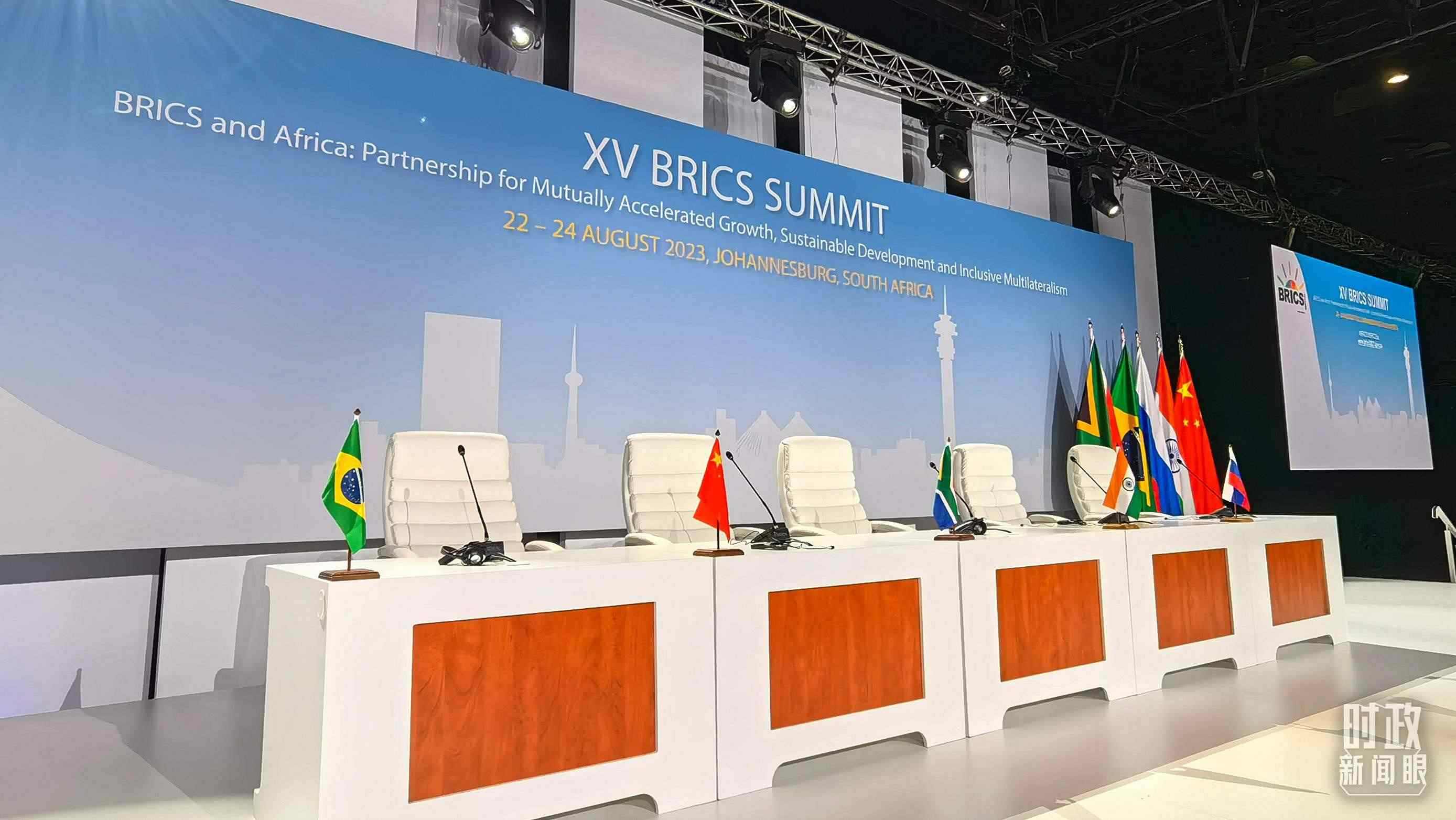 △金磚國家領導人第十五次會晤特別記者會會場。(總臺央視記者韓銳拍攝)