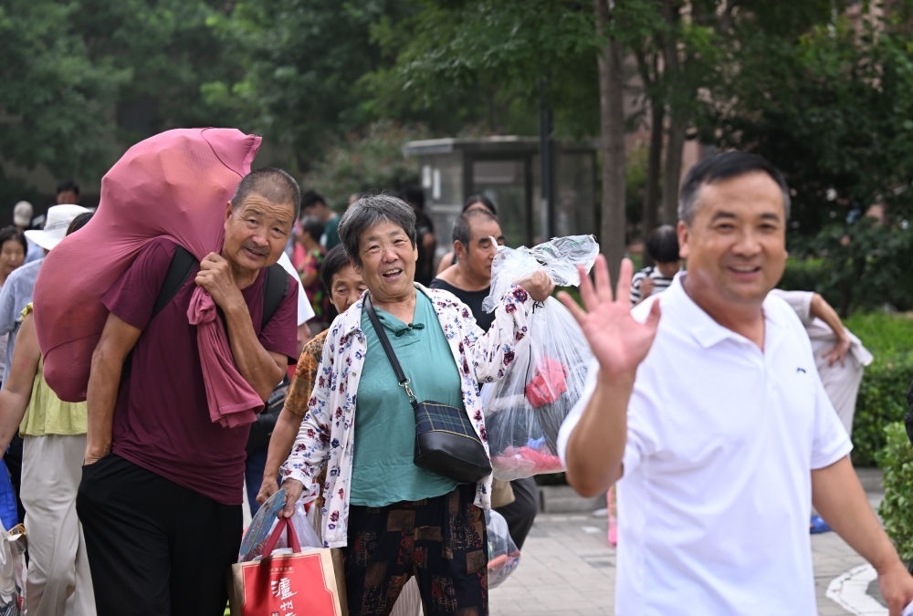 8月20日,在天津市西青區(qū)赤龍南街道一臨時(shí)安置點(diǎn),村民收拾行李準(zhǔn)備回家。當(dāng)日,天津市靜海區(qū)東淀蓄滯洪區(qū)37000余名轉(zhuǎn)移安置人員全部返回臺(tái)頭鎮(zhèn)、獨(dú)流鎮(zhèn)、王口鎮(zhèn)等地。