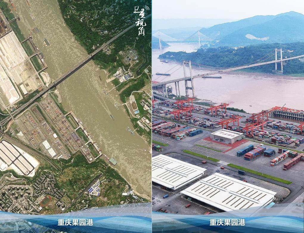 重慶果園港是長(zhǎng)江上游第一大港口。習(xí)近平來到重慶果園港碼頭前沿平臺(tái),考察長(zhǎng)江航運(yùn)和港口裝卸作業(yè)。