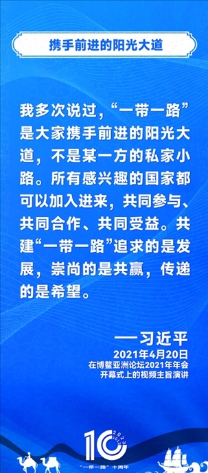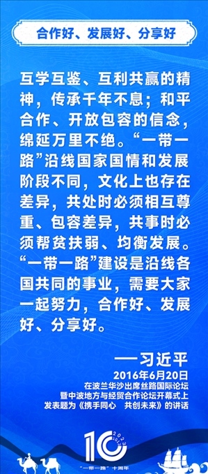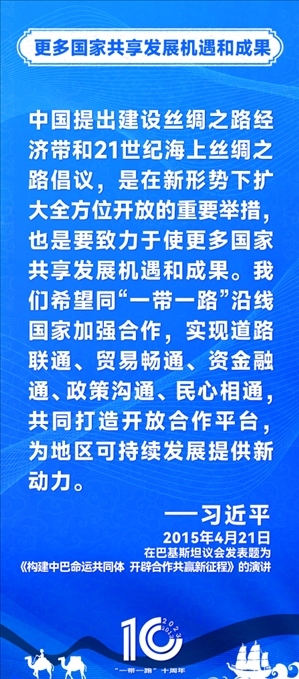 10年前,習(xí)近平主席提出共建“絲綢之路經(jīng)濟(jì)帶”和“21世紀(jì)海上絲綢之路”,即共建“一帶一路”倡議。過(guò)去10年來(lái),習(xí)近平主席在多個(gè)場(chǎng)合發(fā)表講話和署名文章,為世界描繪了共建“一帶一路”互聯(lián)互通、合作共贏的宏偉藍(lán)圖。