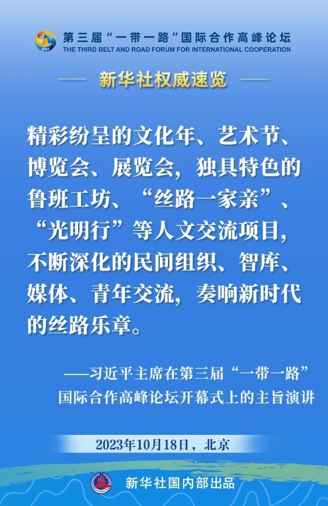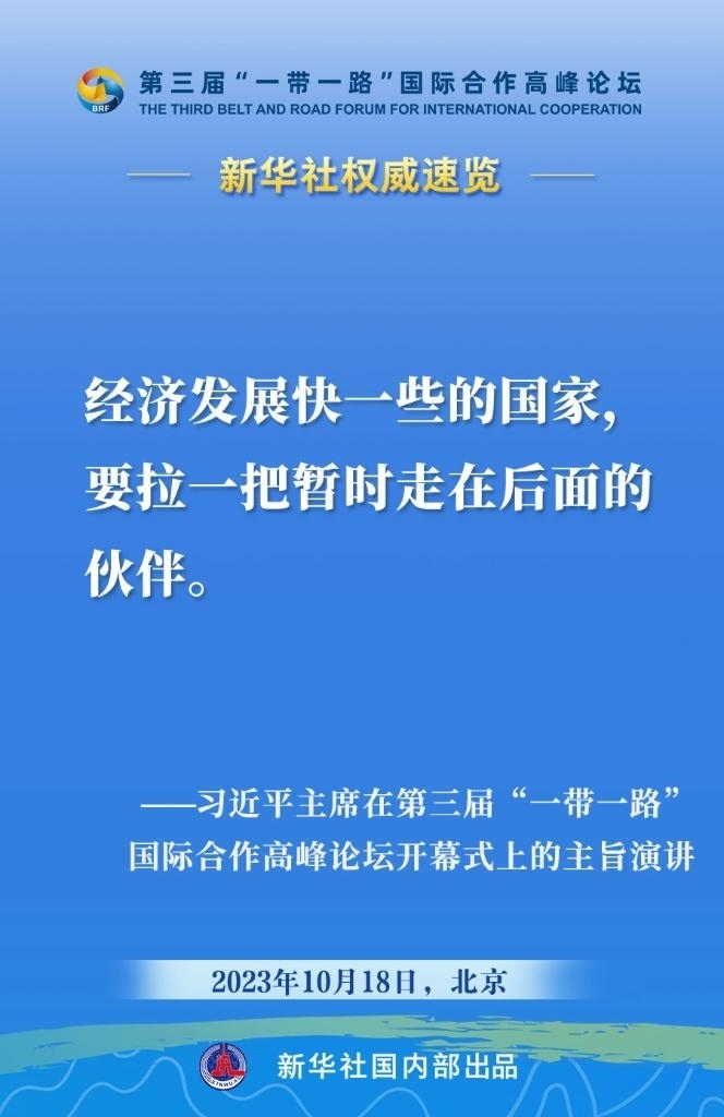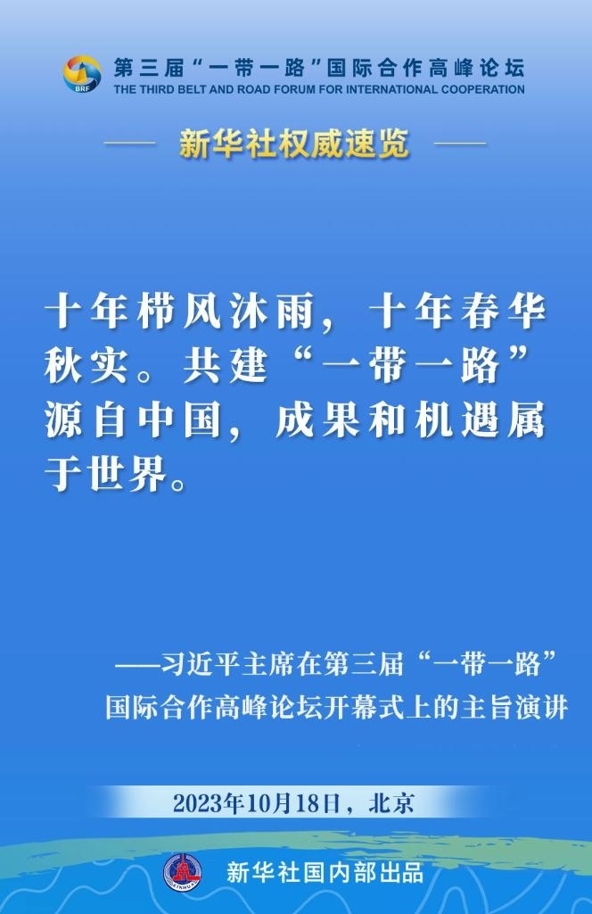 10月18日,國家主席習(xí)近平在第三屆“一帶一路”國際合作高峰論壇開幕式上發(fā)表主旨演講。一起來看金句。