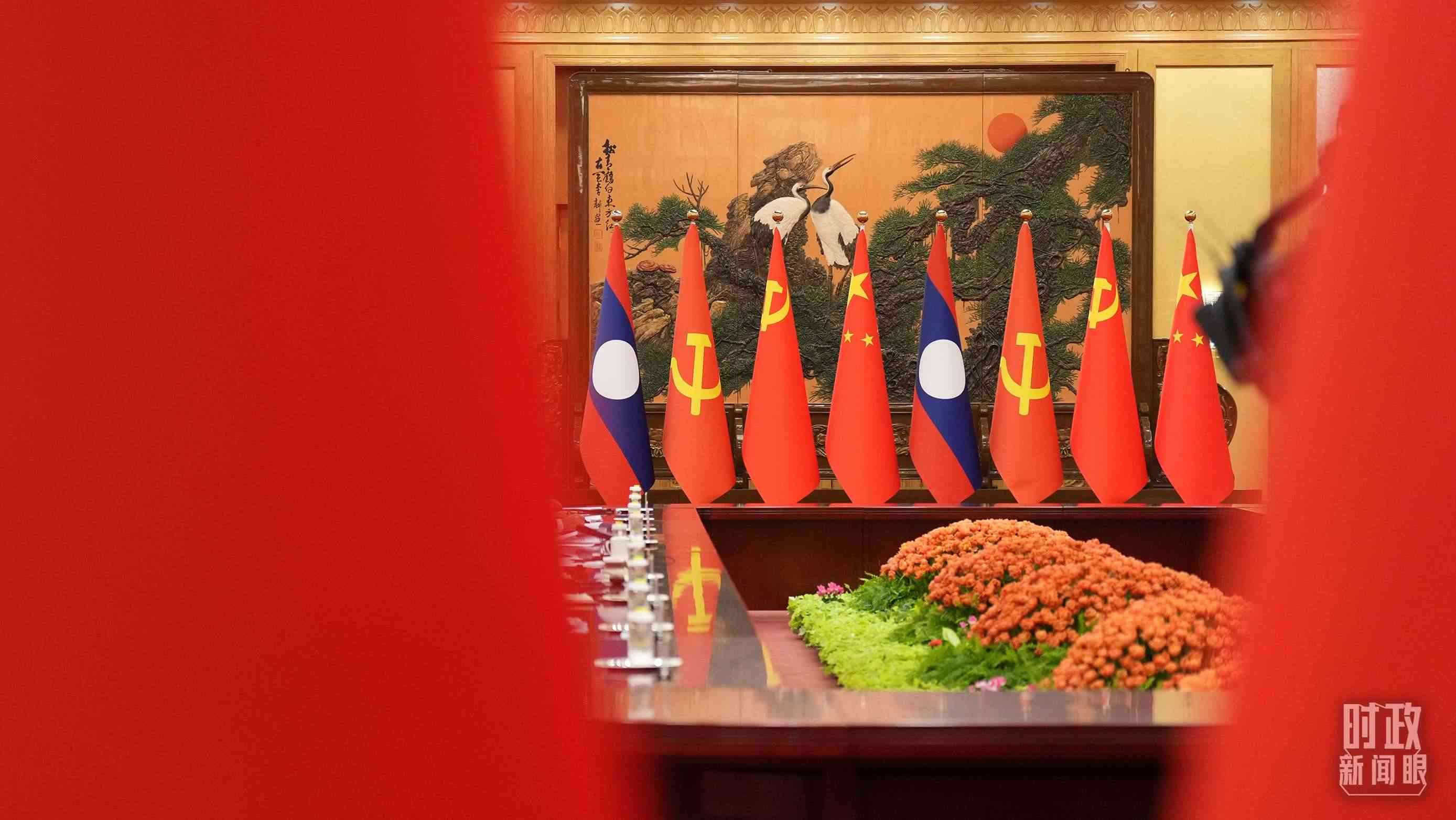 △中老領導人會見現(xiàn)場。(總臺國廣記者李晉拍攝)