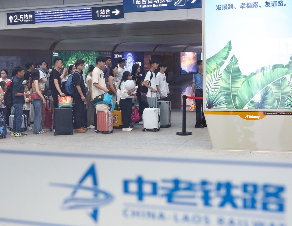 在云南景洪市的中老鐵路西雙版納站,旅客有序進(jìn)入站臺乘車(2023年10月5日攝)。新華社發(fā)(李云生 攝)