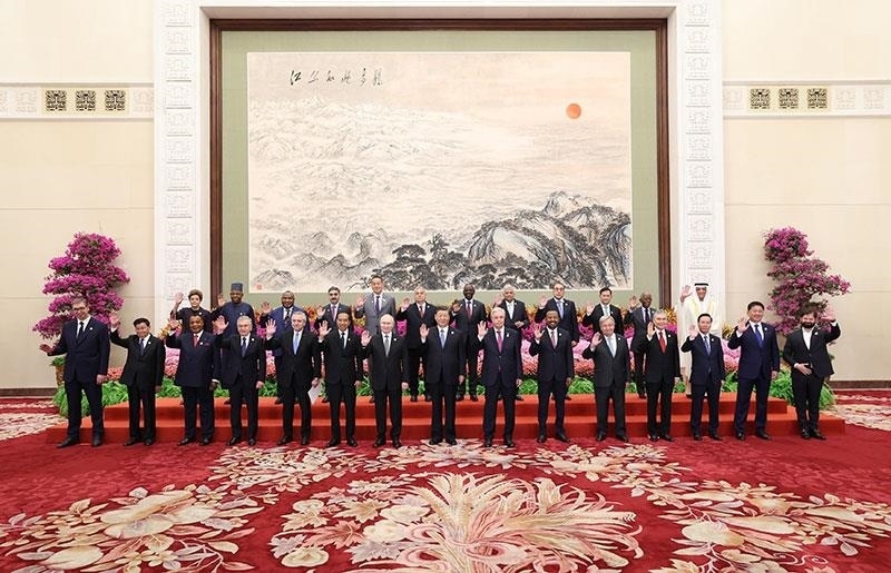 △2023年10月18日,第三屆“一帶一路”國(guó)際合作高峰論壇開幕式前,習(xí)近平主席同出席高峰論壇的國(guó)際貴賓集體合影。