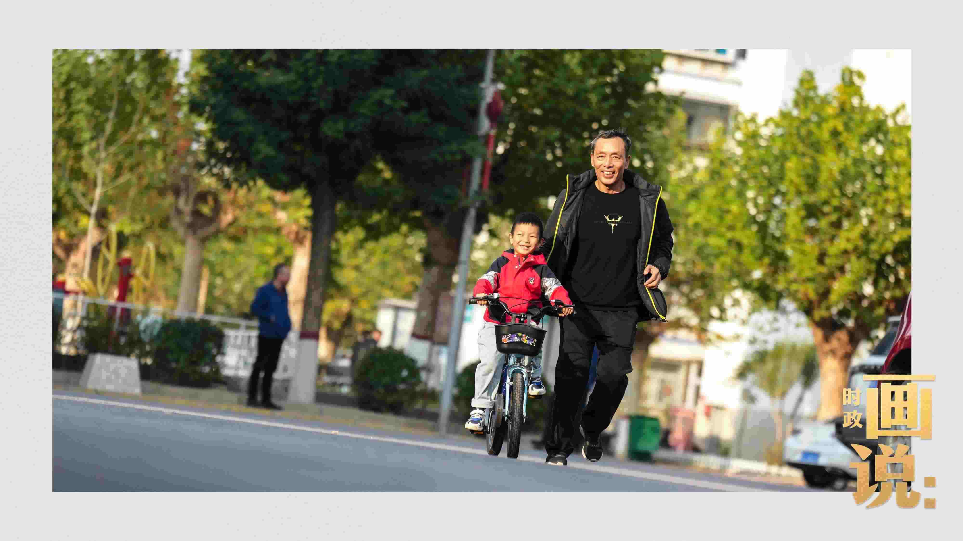 △學(xué)騎自行車(chē)的爺孫倆其樂(lè)融融。冬日的暖陽(yáng)留在身上,會(huì)心的笑容掛在臉上。永濟(jì)秀園小區(qū),涿州。