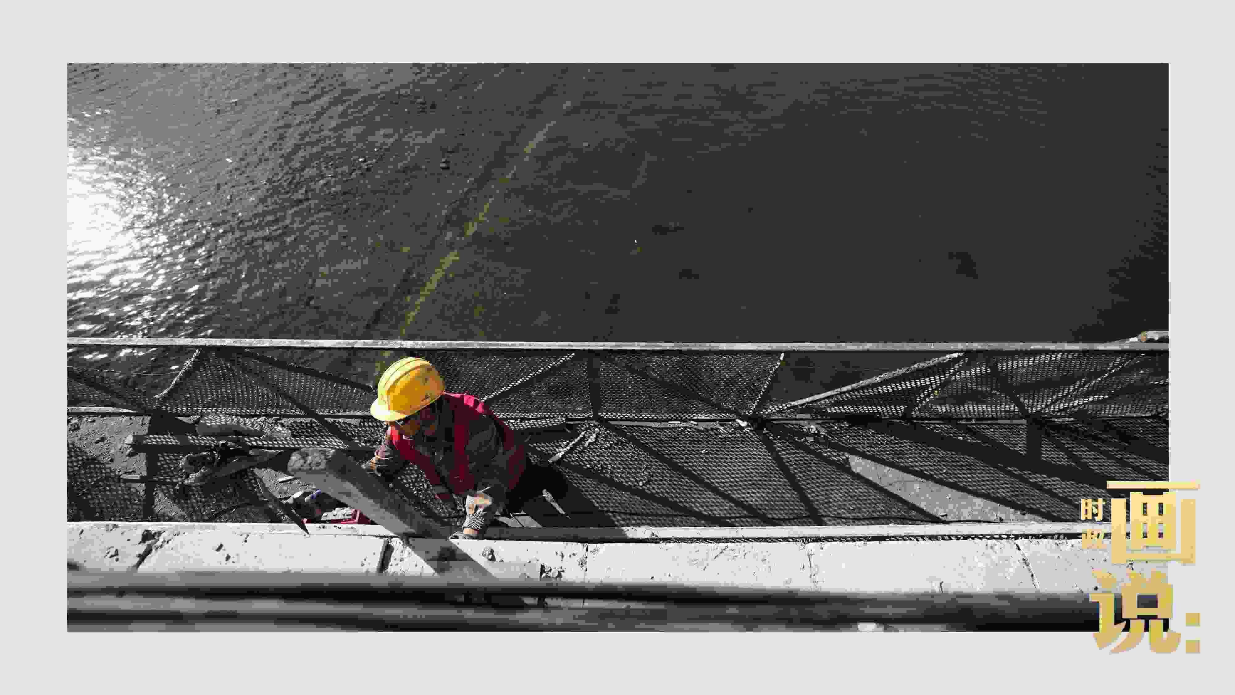 △工人在重新加固的橋梁上加裝路燈。水峪嘴村,北京。冬日里的永定河靜靜流淌,一度受災(zāi)嚴(yán)重的流域沿線正在重回平靜。