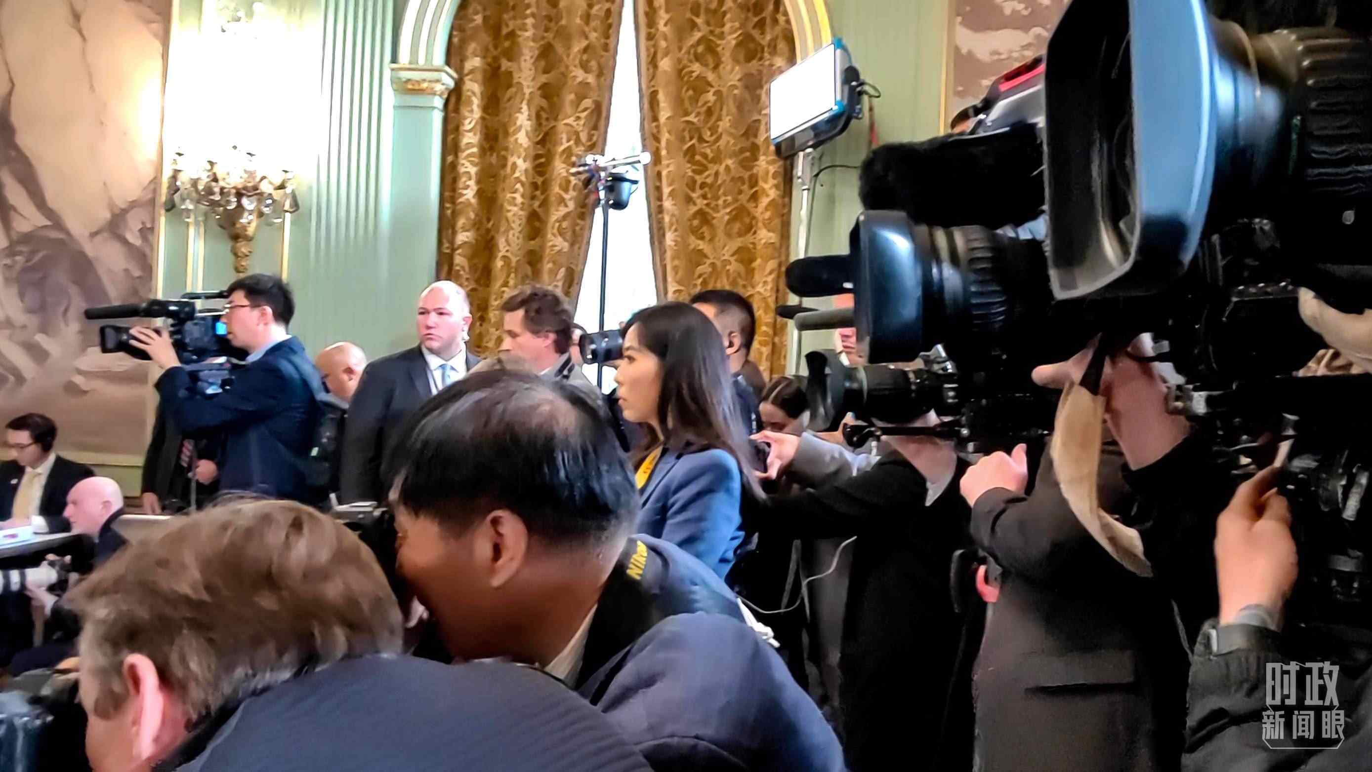 會(huì)晤現(xiàn)場(chǎng),忙于拍攝的各國(guó)記者。(總臺(tái)央視記者張曉鵬拍攝)