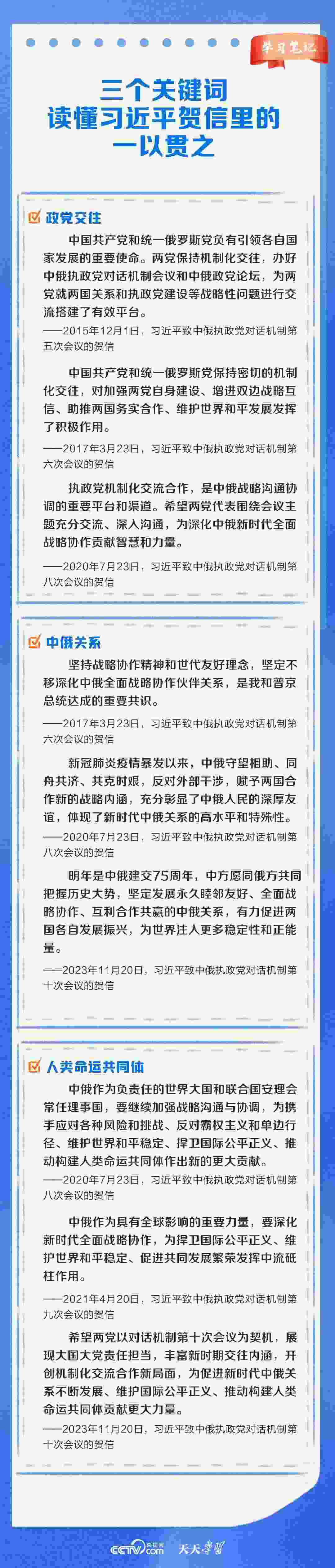 11月20日,中俄執(zhí)政黨對(duì)話機(jī)制第十次會(huì)議以視頻方式舉辦。習(xí)近平總書記同普京總統(tǒng)分別向會(huì)議致賀信。習(xí)近平總書記在賀信中強(qiáng)調(diào),中俄執(zhí)政黨對(duì)話機(jī)制已發(fā)展成為兩國(guó)鞏固政治互信、密切戰(zhàn)略協(xié)作、推進(jìn)互利合作的獨(dú)特渠道和平臺(tái)。