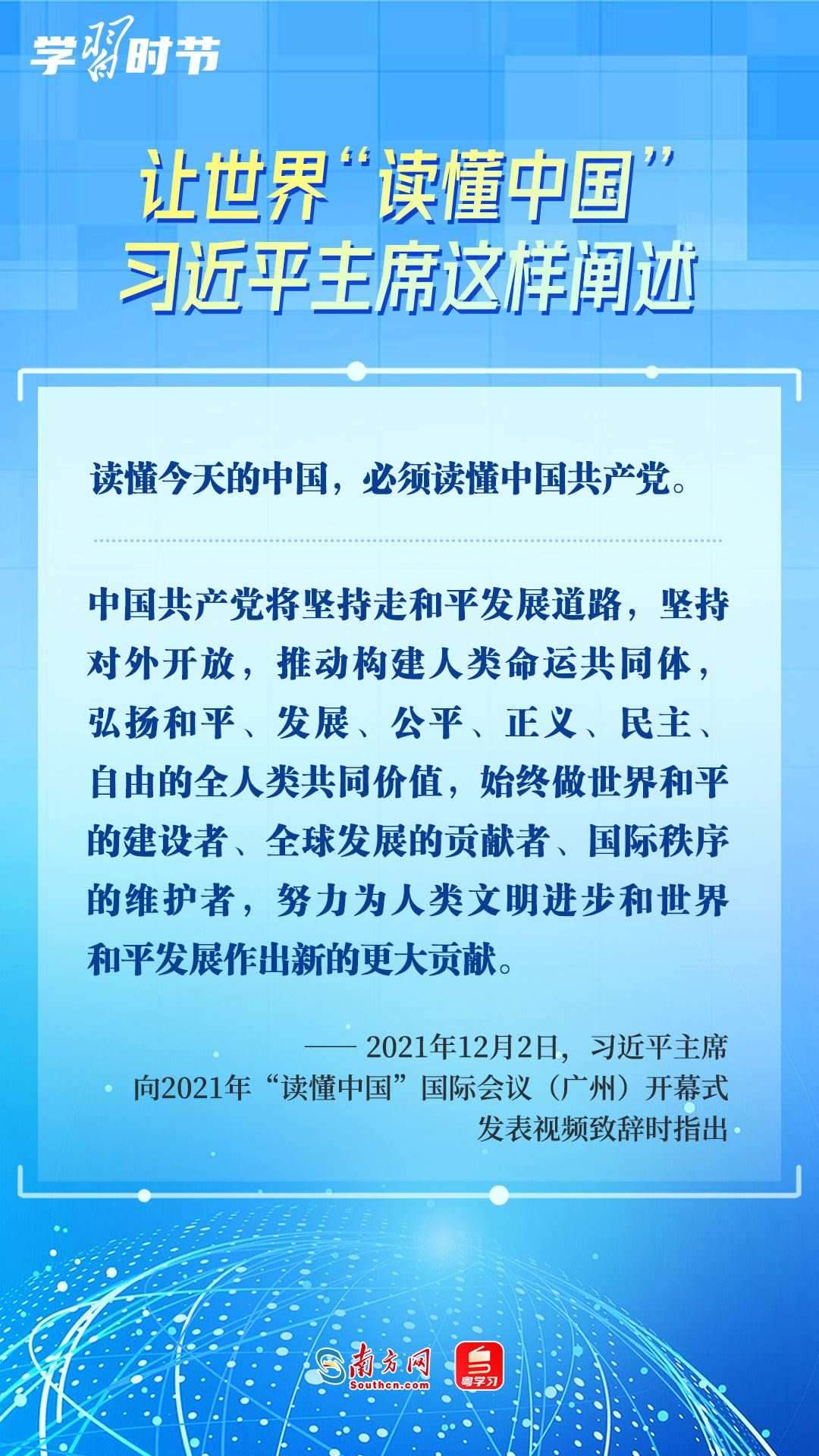 習(xí)近平主席高度重視“讀懂中國”國際會(huì)議,多次會(huì)見與會(huì)代表、向會(huì)議致辭或致賀信,闡述中國的發(fā)展道路、改革開放、對(duì)外政策等,讓我們一同學(xué)習(xí)。