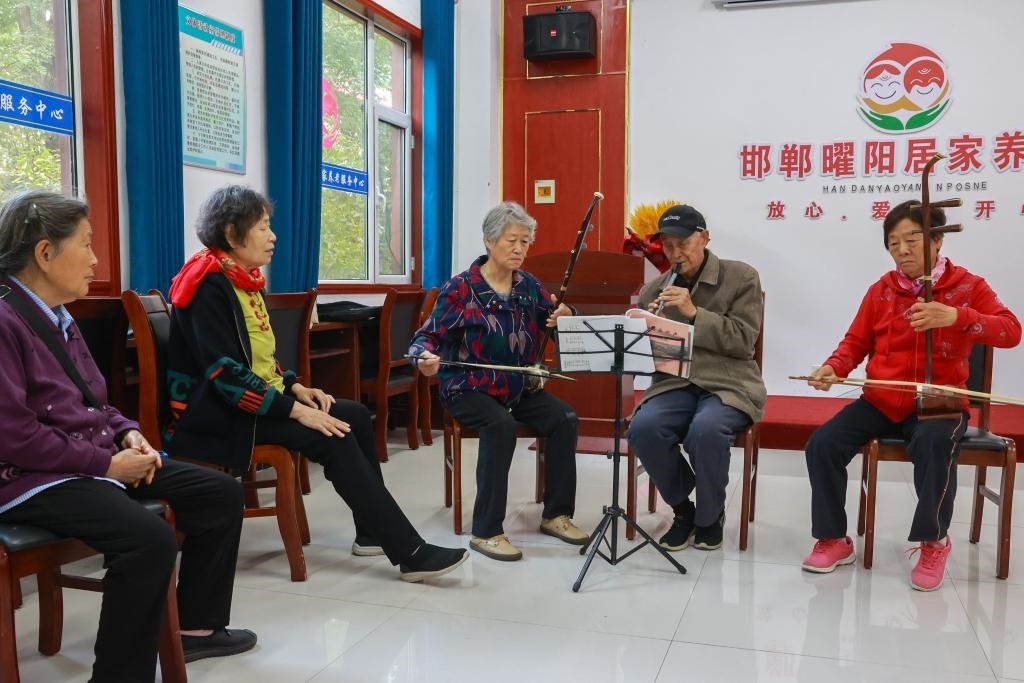 圖為河北省邯鄲市邯山區(qū)曜陽(yáng)養(yǎng)老服務(wù)中心內(nèi),老人在學(xué)習(xí)樂器演奏。新華社記者趙鴻宇 攝