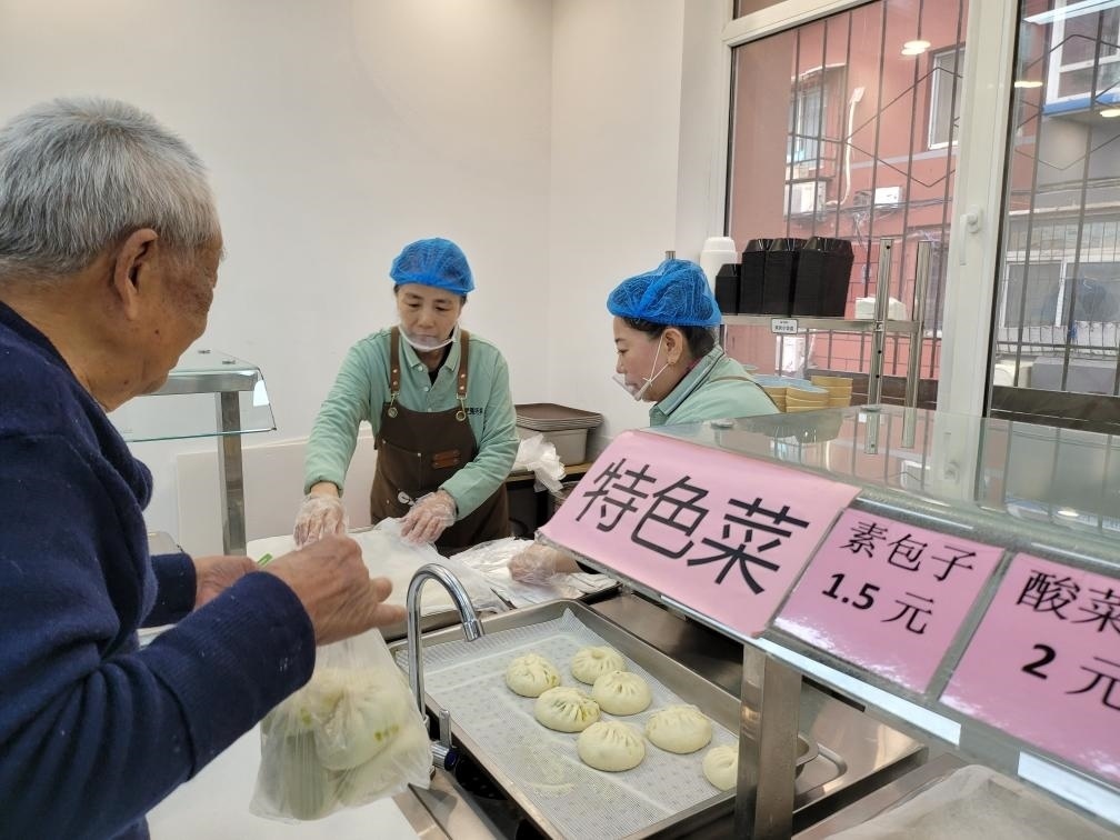 臨近中午,遼寧省沈陽(yáng)市大東區(qū)東勝社區(qū)網(wǎng)格員在群中發(fā)布了“今日菜譜”:燒排骨、燒茄子、雪里紅燉豆腐……88歲的居民唐孝周來到社區(qū)開辦的惠民食堂,購(gòu)買了一菜一飯,和鄰居邊聊邊吃。