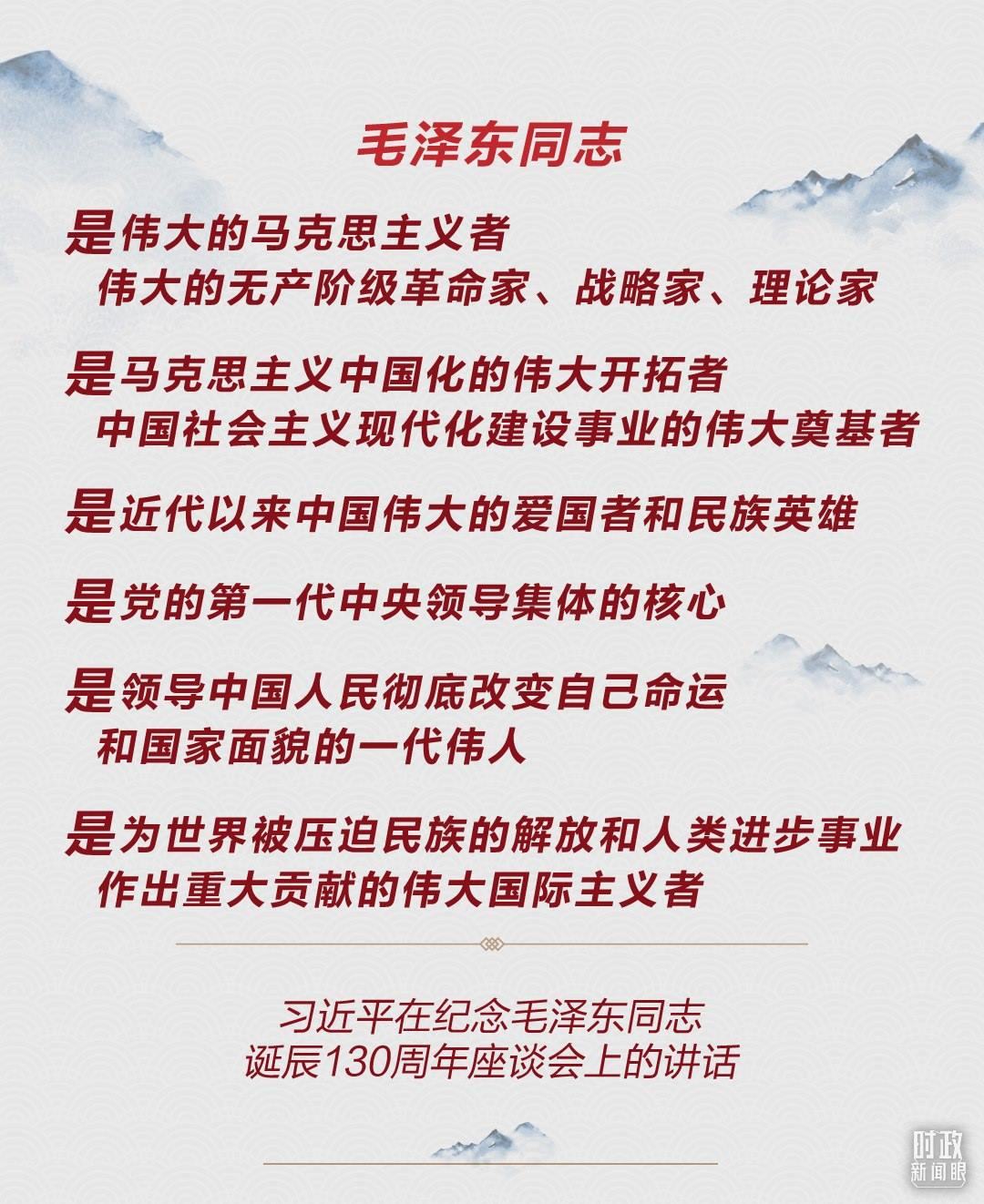 今年12月26日,是毛澤東同志誕辰130周年紀(jì)念日。當(dāng)天上午,中共中央在人民大會(huì)堂舉行座談會(huì),紀(jì)念毛澤東同志誕辰130周年。習(xí)近平總書記發(fā)表重要講話。