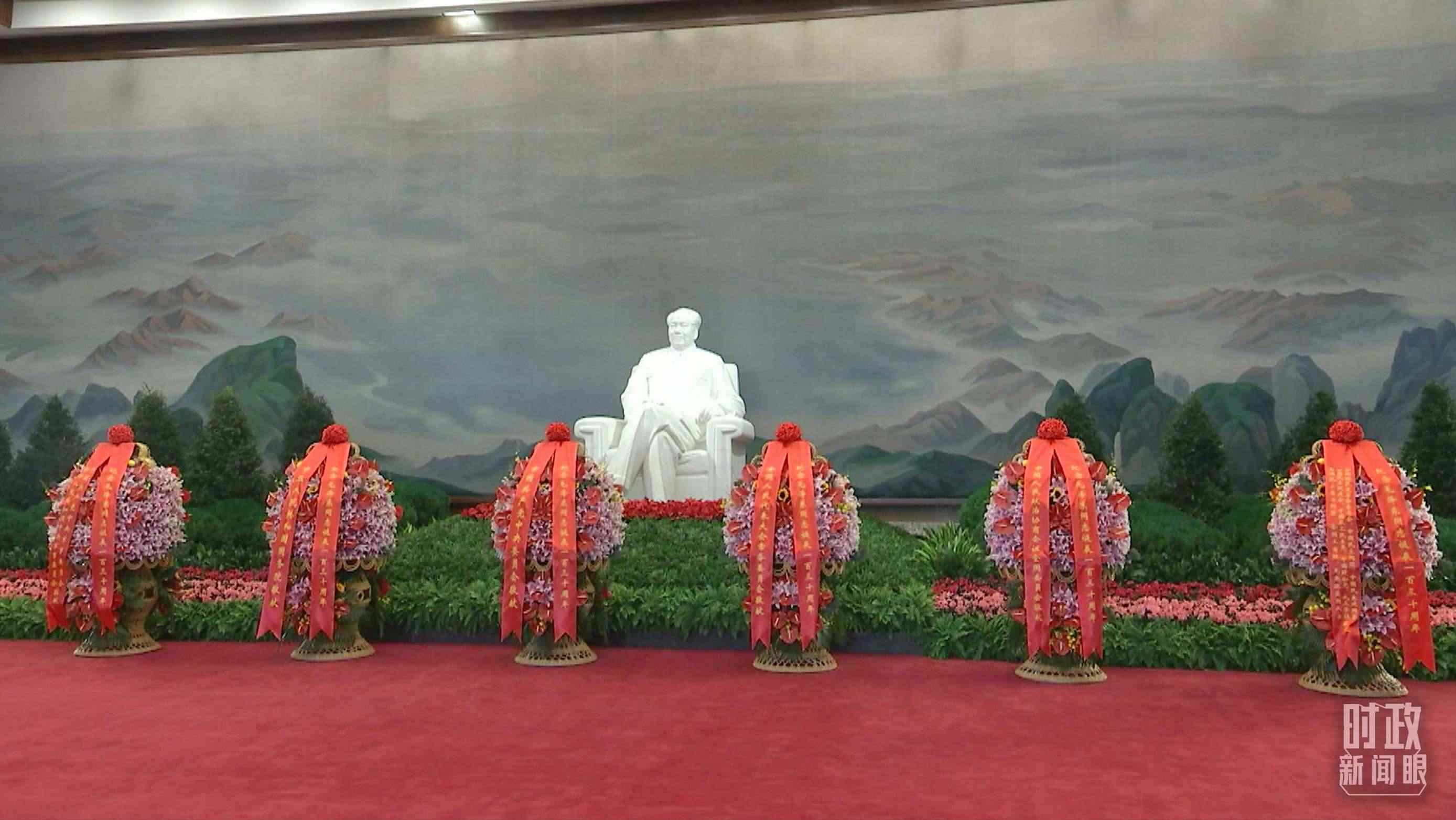 △座談會(huì)前,習(xí)近平等領(lǐng)導(dǎo)同志來到毛主席紀(jì)念堂。北大廳內(nèi),中共中央,全國人大常委會(huì),國務(wù)院,全國政協(xié),中央軍委,各民主黨派、全國工商聯(lián)和無黨派愛國人士敬獻(xiàn)的花籃擺放在毛澤東同志坐像正前方。(總臺(tái)央視記者郭鴻拍攝)