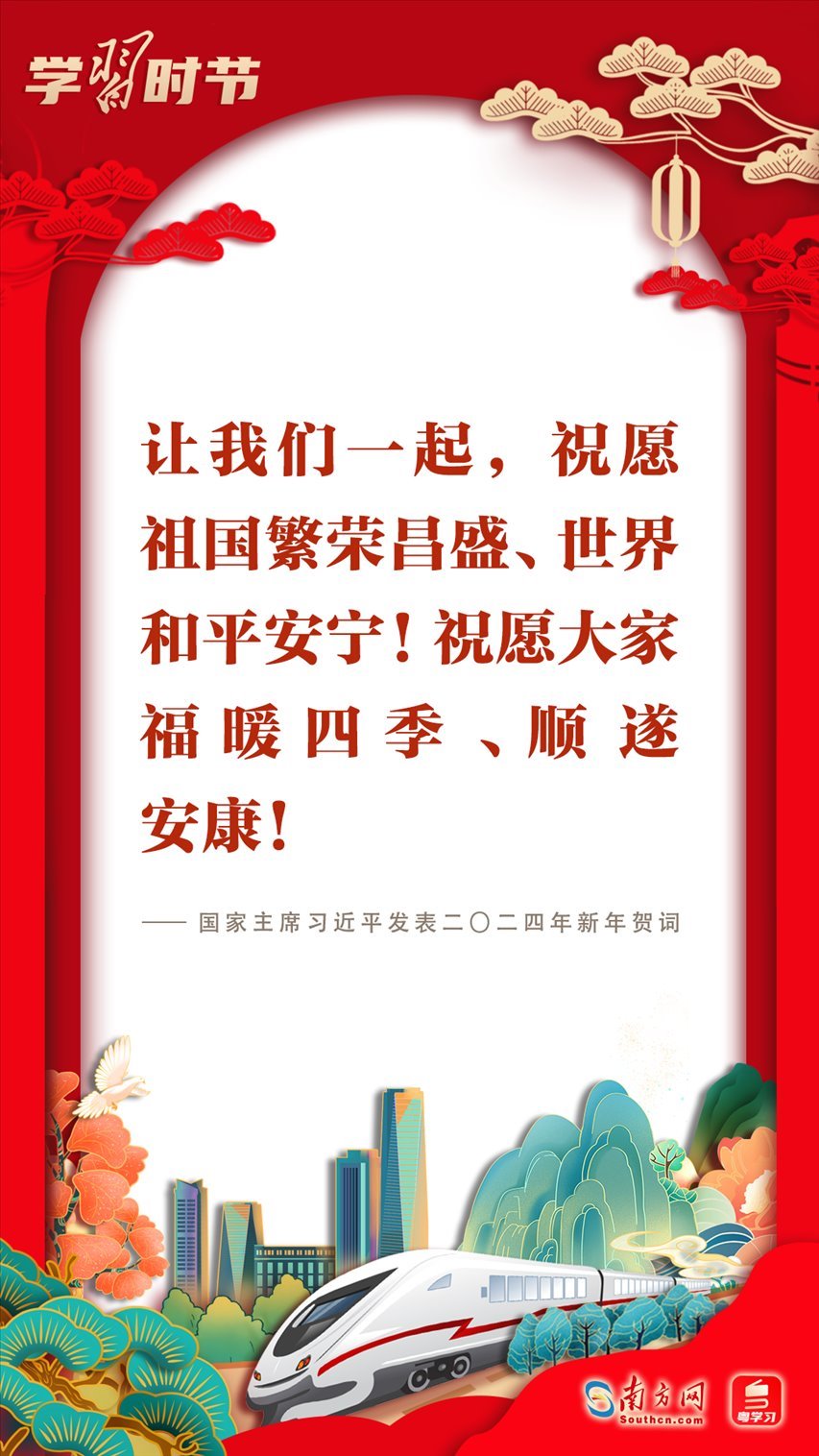 2023年12月31日晚,國家主席習近平在北京發(fā)表二〇二四年新年賀詞。賀詞飽含對廣大人民群眾的深情,彰顯對中國發(fā)展的堅定信心?;厥走^往,展望未來;砥礪前行,征程再起。讓我們一起在習近平主席的新年賀詞中感受直抵心靈的溫暖、催人奮進的力量!