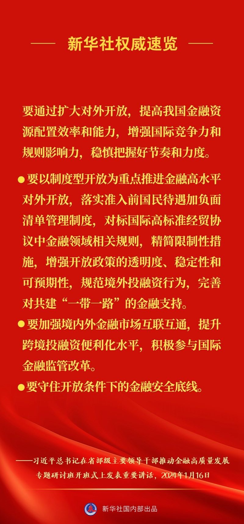 習(xí)近平總書記16日上午在省部級主要領(lǐng)導(dǎo)干部推動金融高質(zhì)量發(fā)展專題研討班開班式上發(fā)表重要講話,一起來看講話要點。