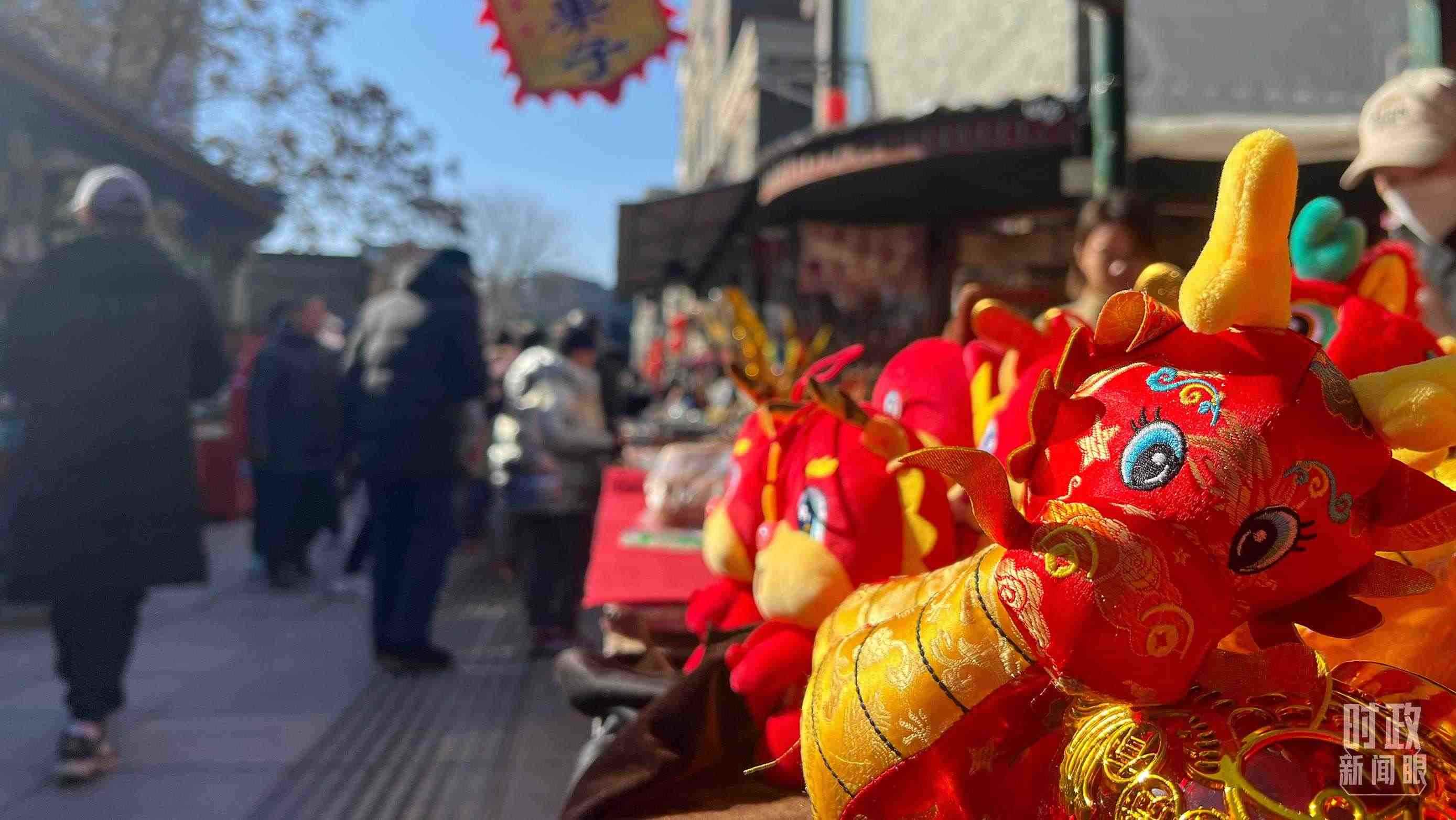 △龍年將至,天津古文化街上“龍”元素隨處可見。(總臺央視記者李煒拍攝)