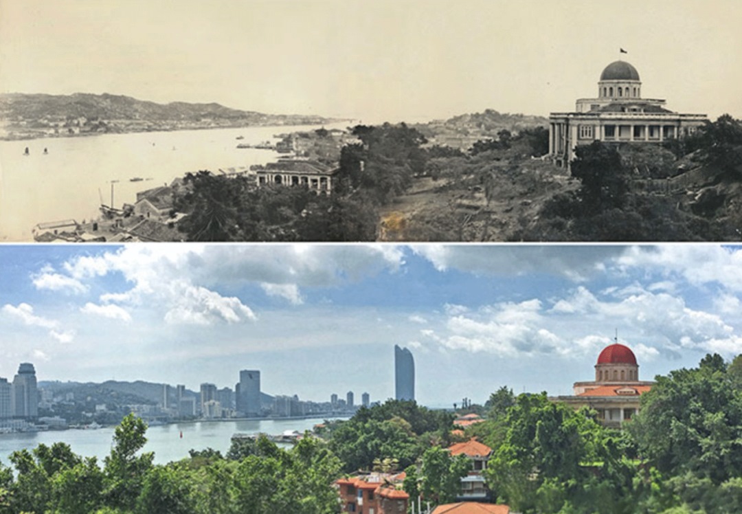 △鼓浪嶼-萬石山風(fēng)景名勝區(qū)的鼓浪嶼“八卦樓”一帶今昔對比