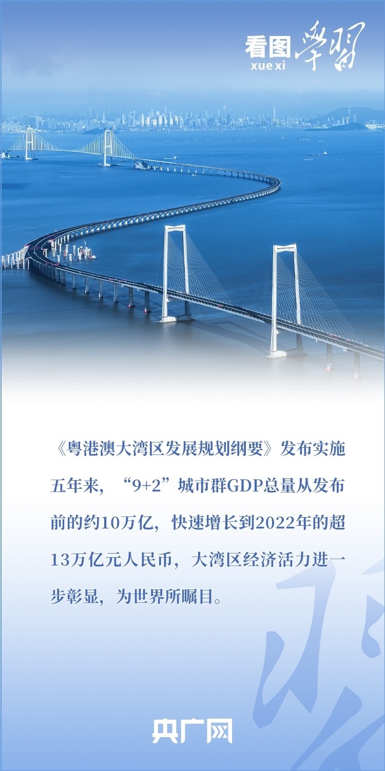 2019年2月,《粵港澳大灣區(qū)發(fā)展規(guī)劃綱要》正式發(fā)布。五年來,習(xí)近平總書記多次作出重要部署和深刻闡述,引領(lǐng)推進(jìn)粵港澳大灣區(qū)高水平建設(shè)??倳洀?qiáng)調(diào),要使粵港澳大灣區(qū)成為新發(fā)展格局的戰(zhàn)略支點(diǎn)、高質(zhì)量發(fā)展的示范地、中國式現(xiàn)代化的引領(lǐng)地。一起來學(xué)習(xí)!
