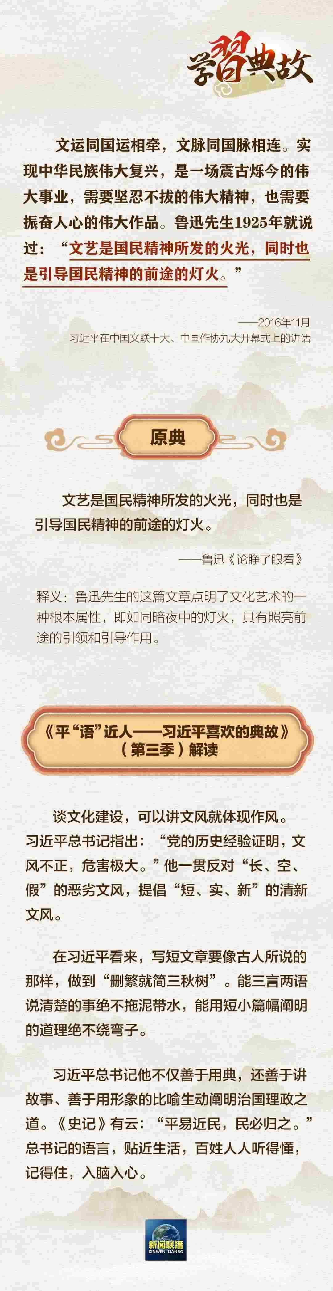文運同國運相牽,文脈同國脈相連。文化自信是一個國家、一個民族發(fā)展中,最基本、最深沉、最持久的力量。黨的二十大報告中指出:“全面建設社會主義現(xiàn)代化國家,必須堅持中國特色社會主義文化發(fā)展道路?!眹@“文化建設”這一主題,總書記曾講到哪些典故?一起學習↓↓↓