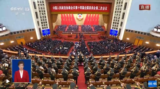 3月4日下午3時(shí),全國(guó)政協(xié)十四屆二次會(huì)議在人民大會(huì)堂開(kāi)幕,全體起立,高唱中華人民共和國(guó)國(guó)歌。