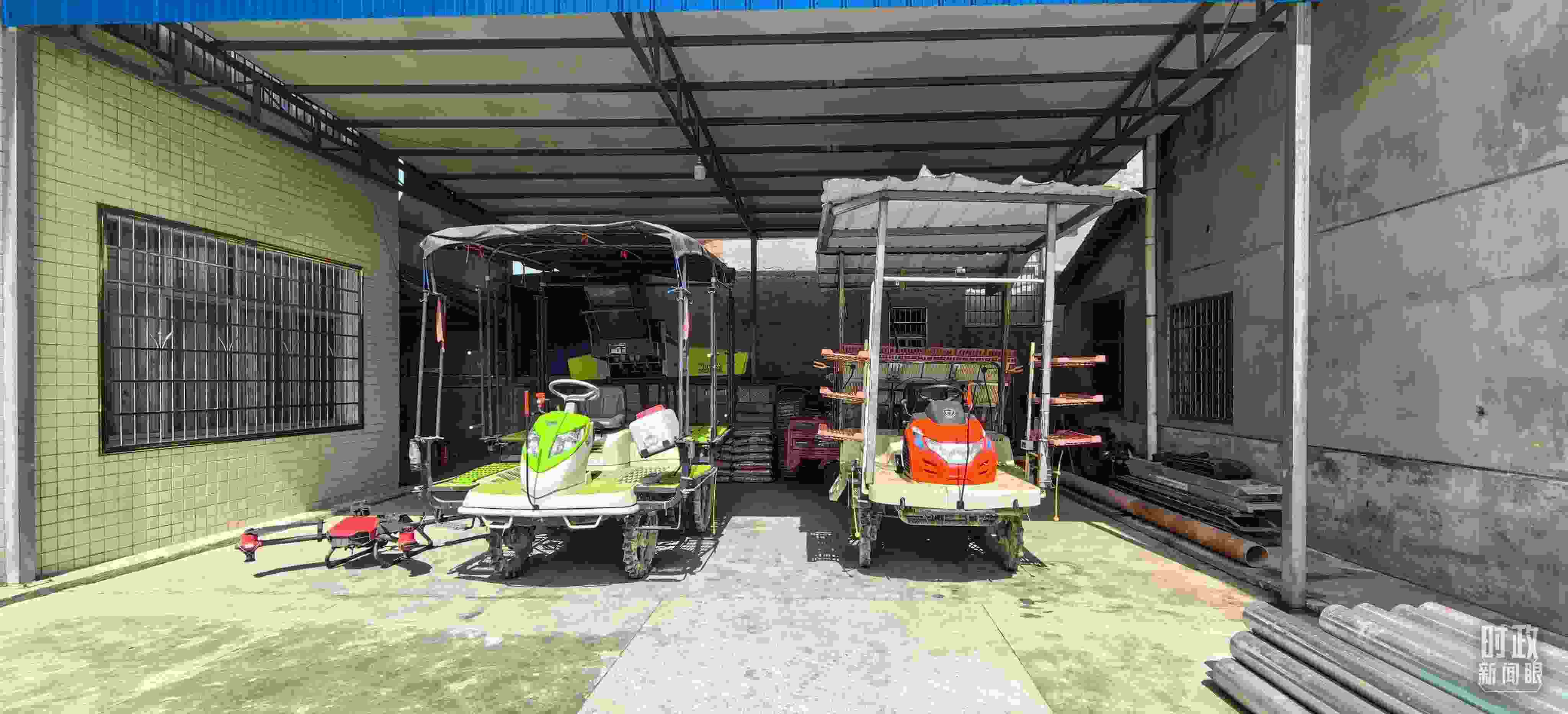 △港中坪村種糧大戶家里的農(nóng)機具。(總臺央視記者馬超拍攝)