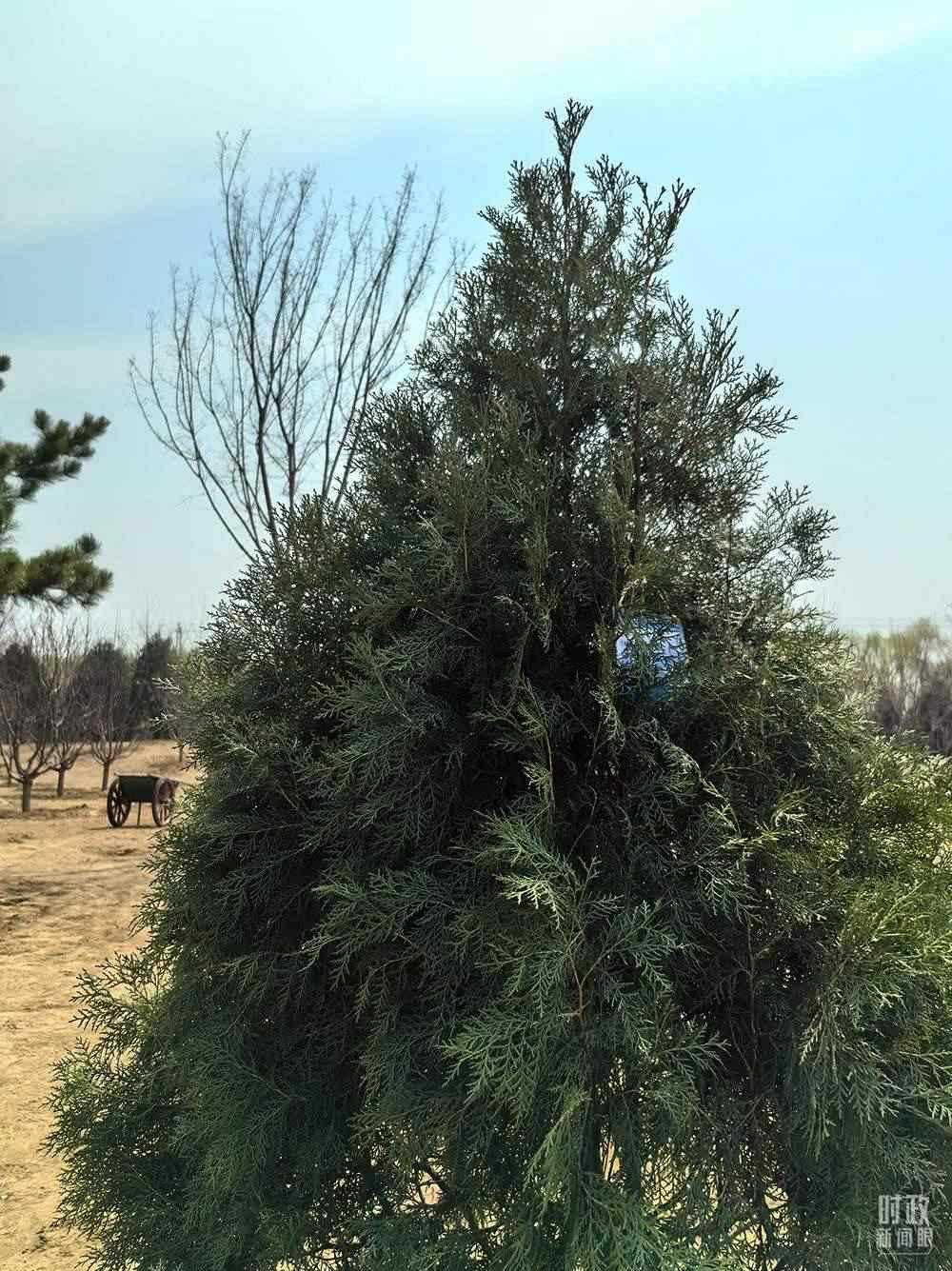 △這是習(xí)近平種下的側(cè)柏樹苗。(總臺央視記者陸泓宇拍攝)