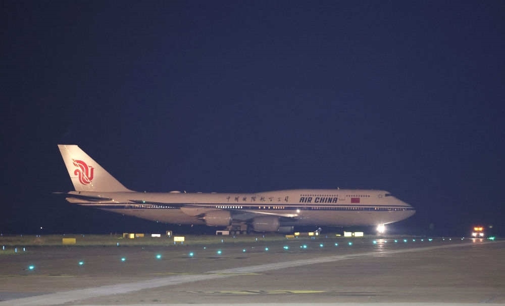習(xí)近平主席夫人彭麗媛,中共中央政治局常委、中央辦公廳主任蔡奇,中共中央政治局委員、外交部部長王毅等陪同人員同機抵達(dá)。