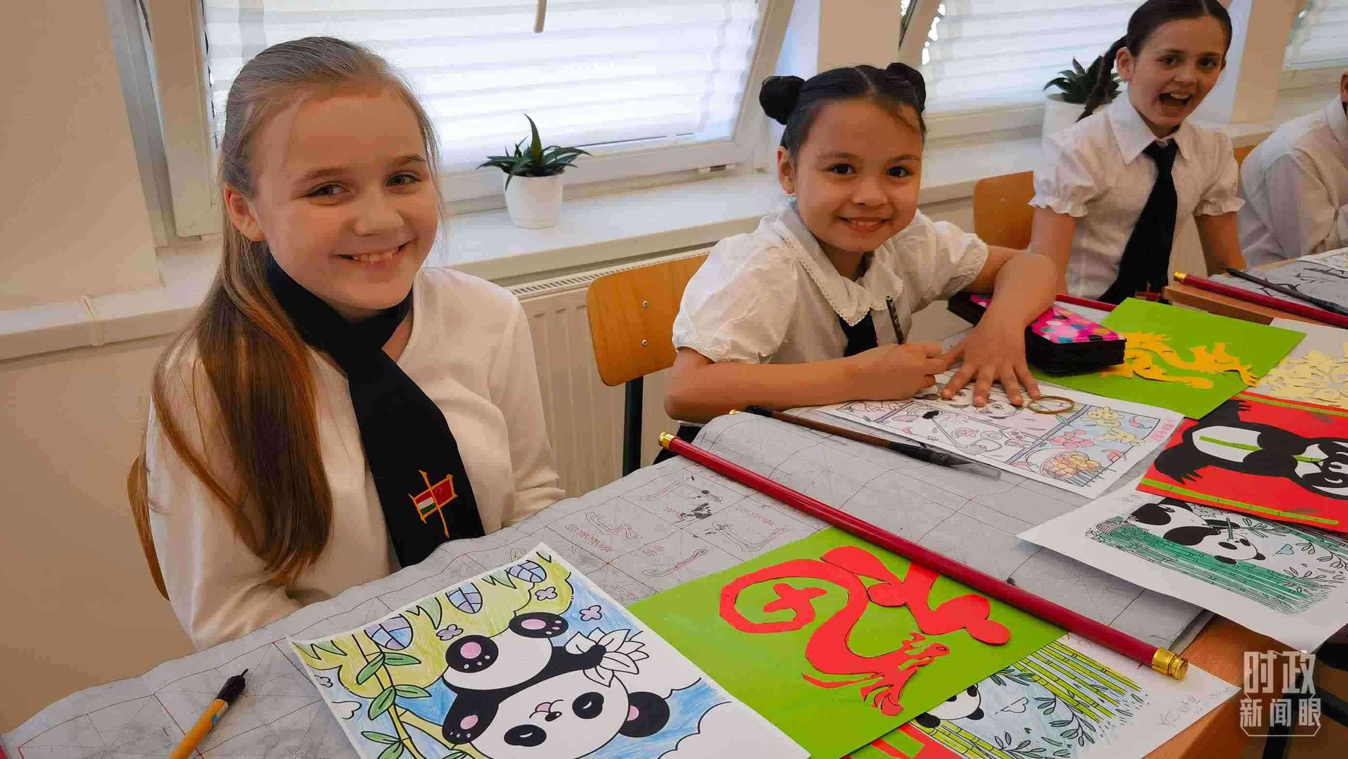 △匈中雙語(yǔ)學(xué)校中國(guó)傳統(tǒng)文化課堂上的孩子們。(總臺(tái)央視記者凌楓拍攝)