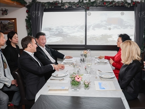 前一天,雙方發(fā)表4份聯(lián)合聲明,簽署綠色發(fā)展、航空、農業(yè)食品、商務、人文等領域近20項雙邊合作文件。此時在春雪紛飛、云海浩渺中,兩國元首“不打領帶”溝通交流,加深彼此理解。此情此景,與兩國元首2019年的“尼斯夜談”、“豫園茶敘”,2023年的“松園會晤”,一脈相承。